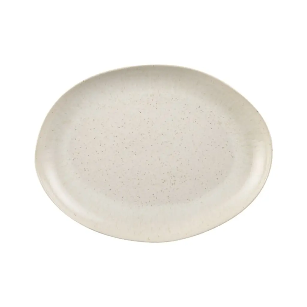 Speckled with flecks of brown reactive glaze, our sand-colored Wilder platter extends a warm welcome to mealtime, whether a sit-down affair or binge-watching snack. Earthy yet stylish, the artisanal stoneware platter is made for us exclusively in Portugal. Showcasing its own unique constellation of speckles and a freeform rim, the oval platter has a modern organic shape that perfectly complements everyday meals or festive holiday gatherings.