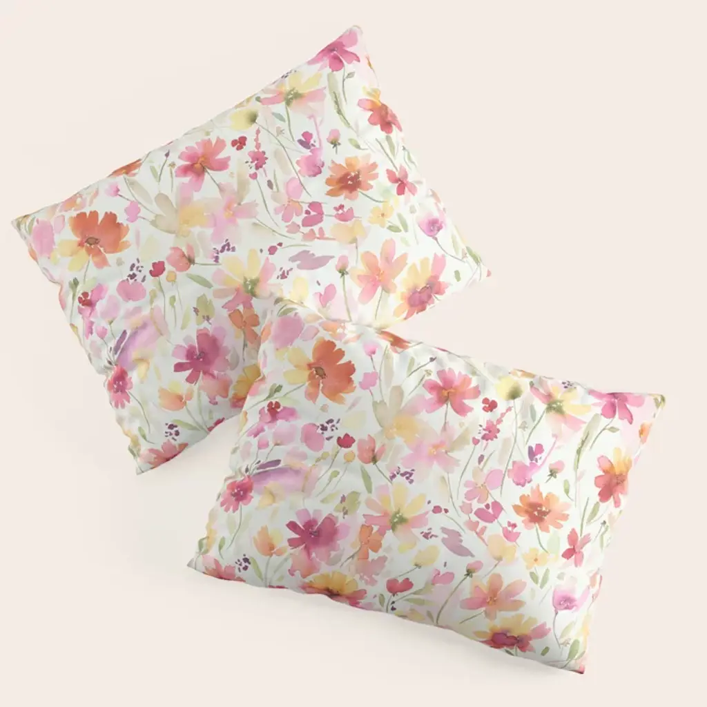 Wildflower butterfly pattern in springtime hues. Made from soft 100% organic cotton. Crisp, long-lasting 200-thread-count. STANDARD 100 by OEKO-TEX® Certified & family safe.