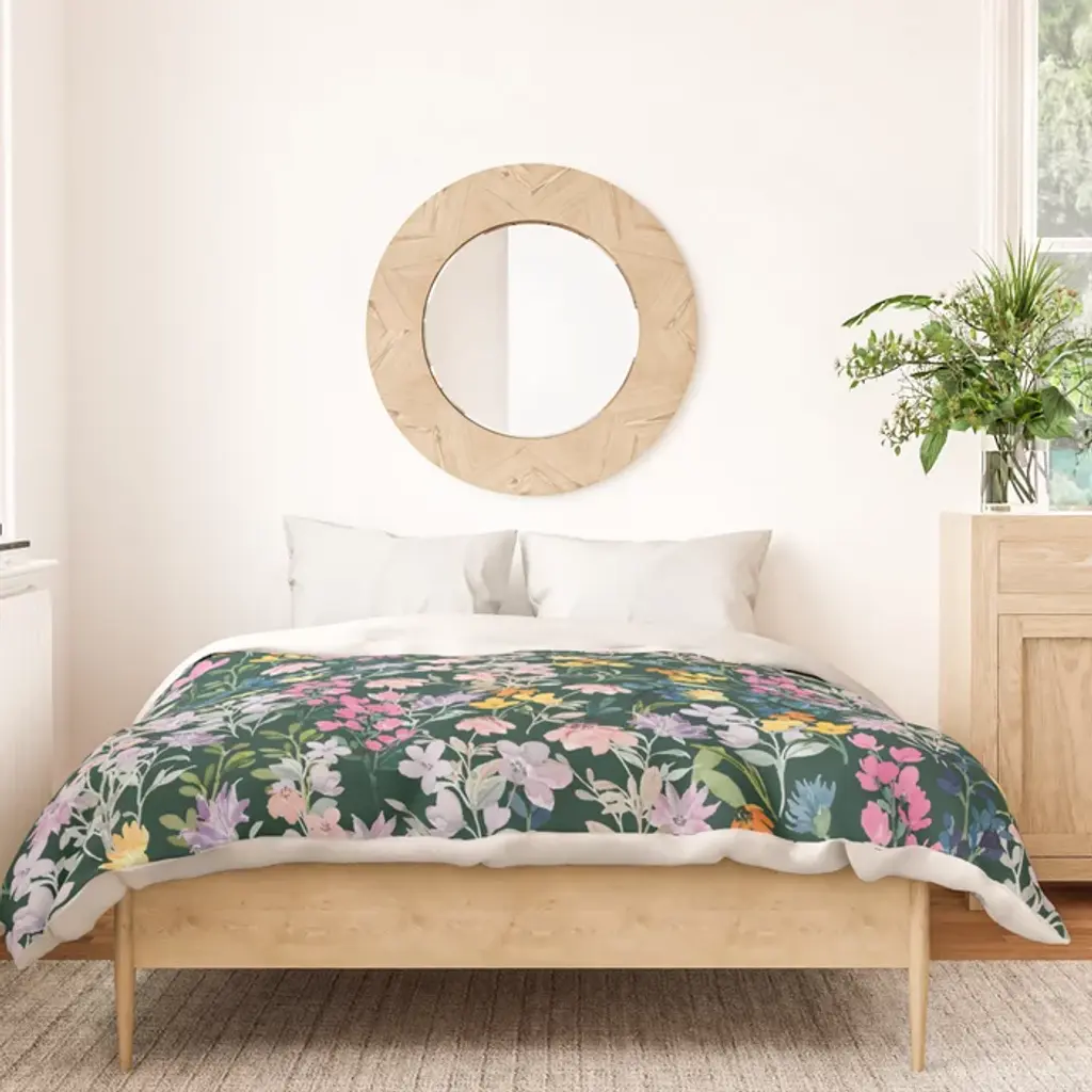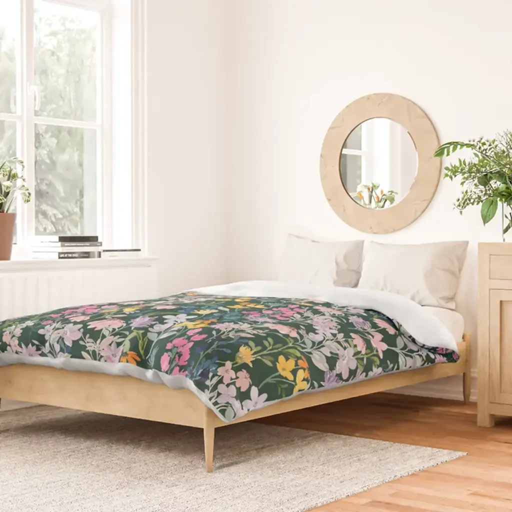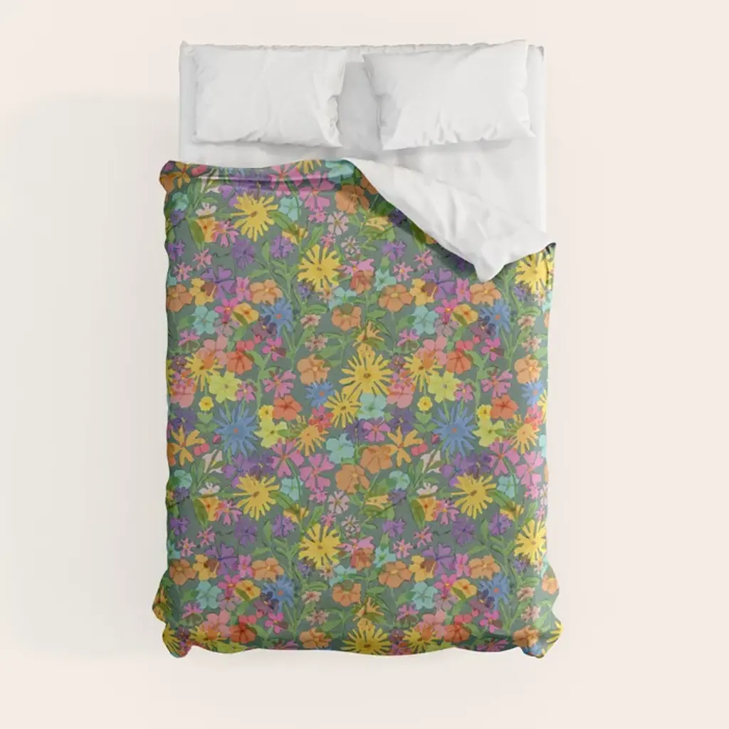 Wildflower Field On Pine Grove - Pink, Orange, Blue, & Purple Duvet Cover