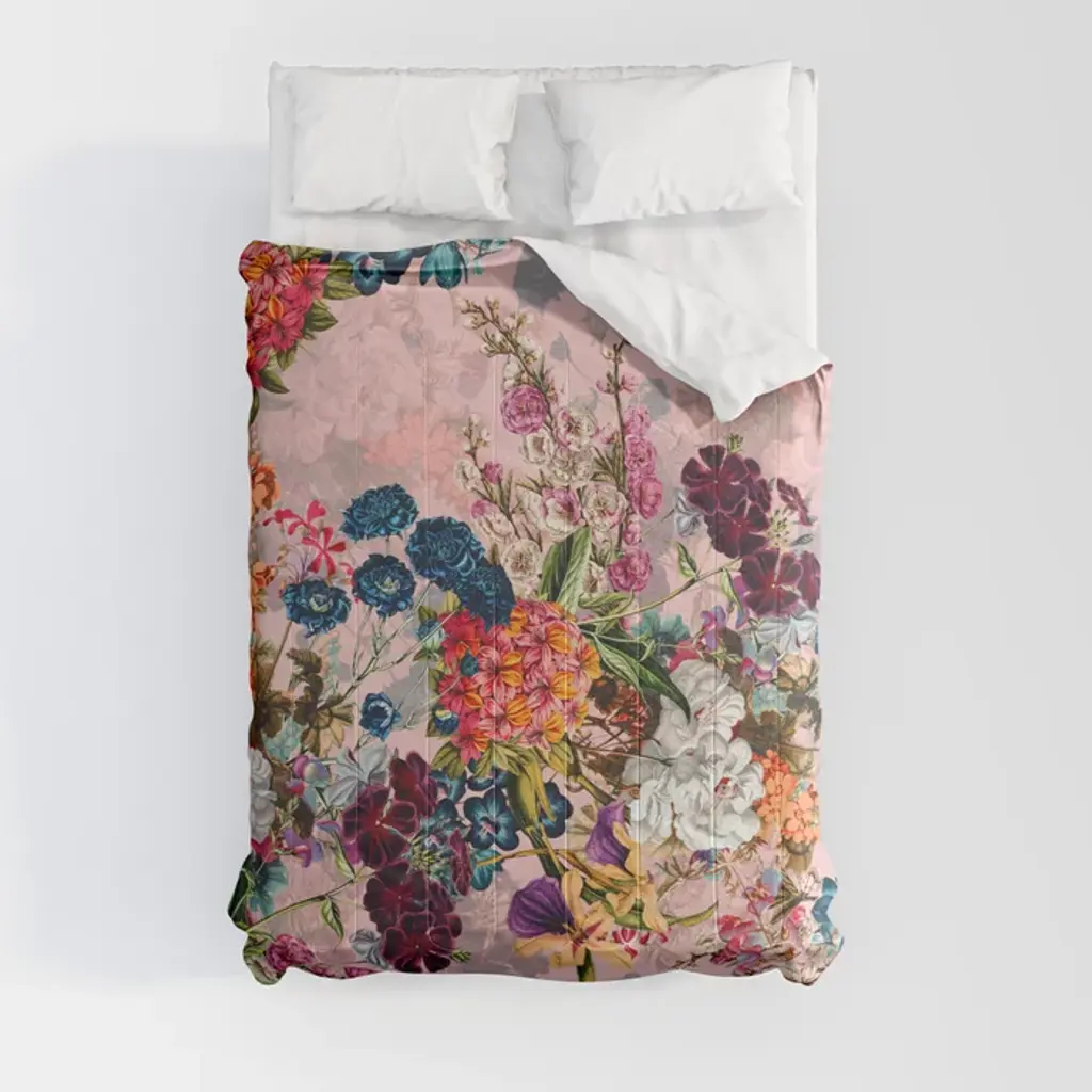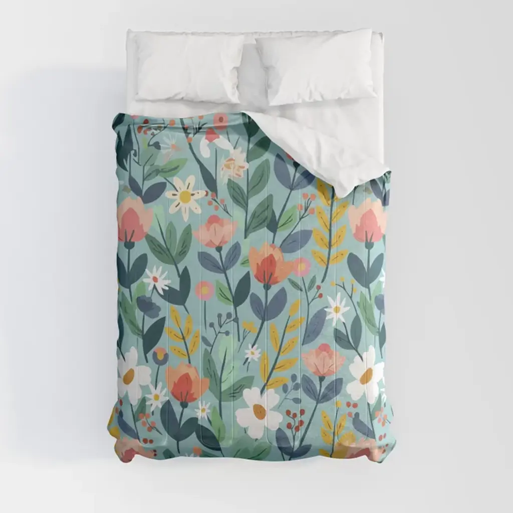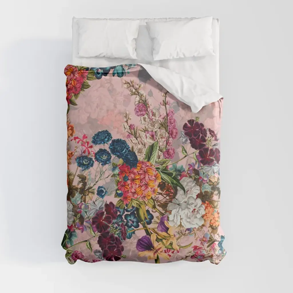 Wildflower Field On Pine Grove - Pink, Orange, Blue, & Purple Duvet Cover
