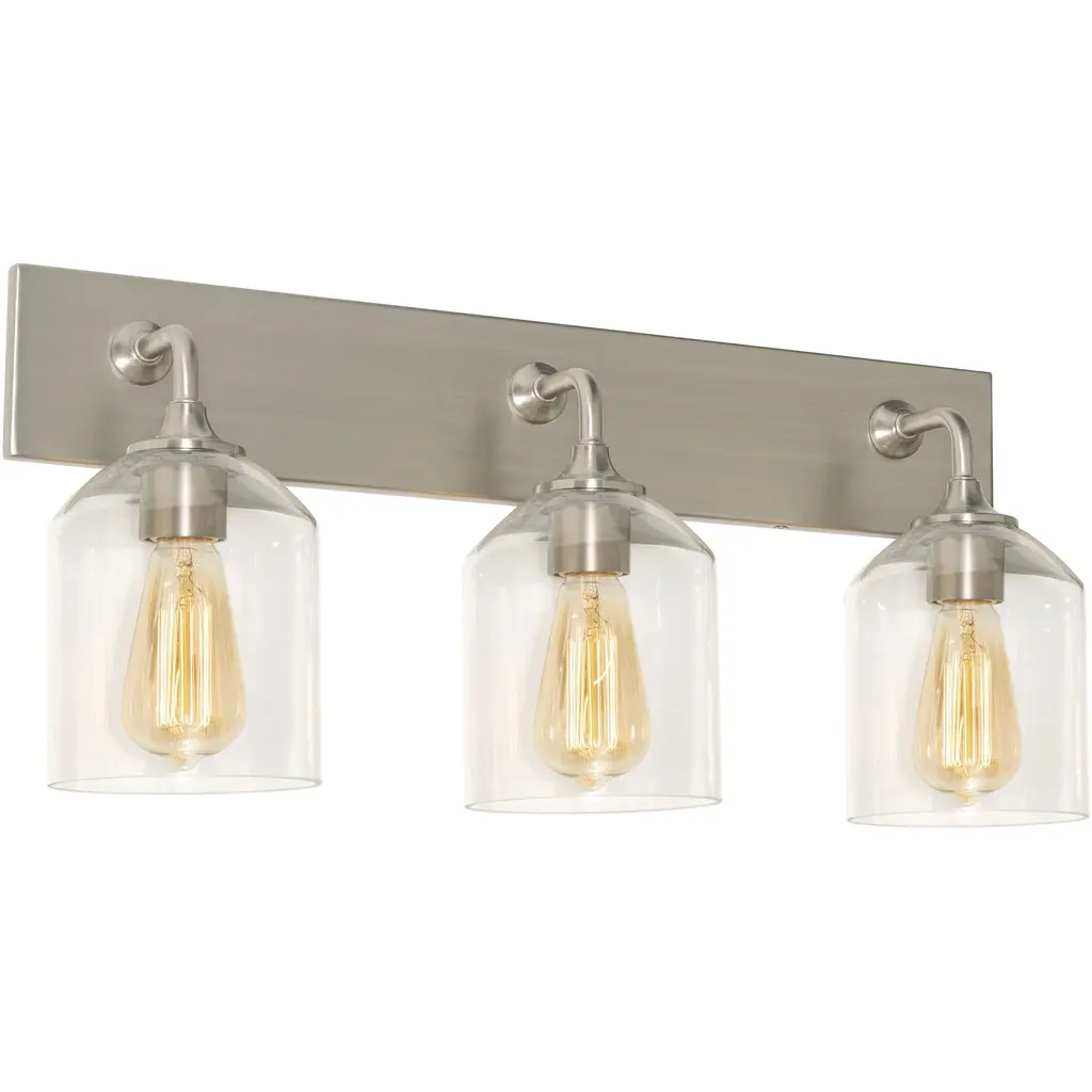 The William Vanity by AFX is made with an elegant modern style that draws influence from the best of vintage style. This light is crafted with a steel backplate in a range of metal finishes that displays bell shaped clear glass shades that house classic Edison bulbs. It's a dimmable accent light that brings your stylish contemporary bath and vanity space to life.