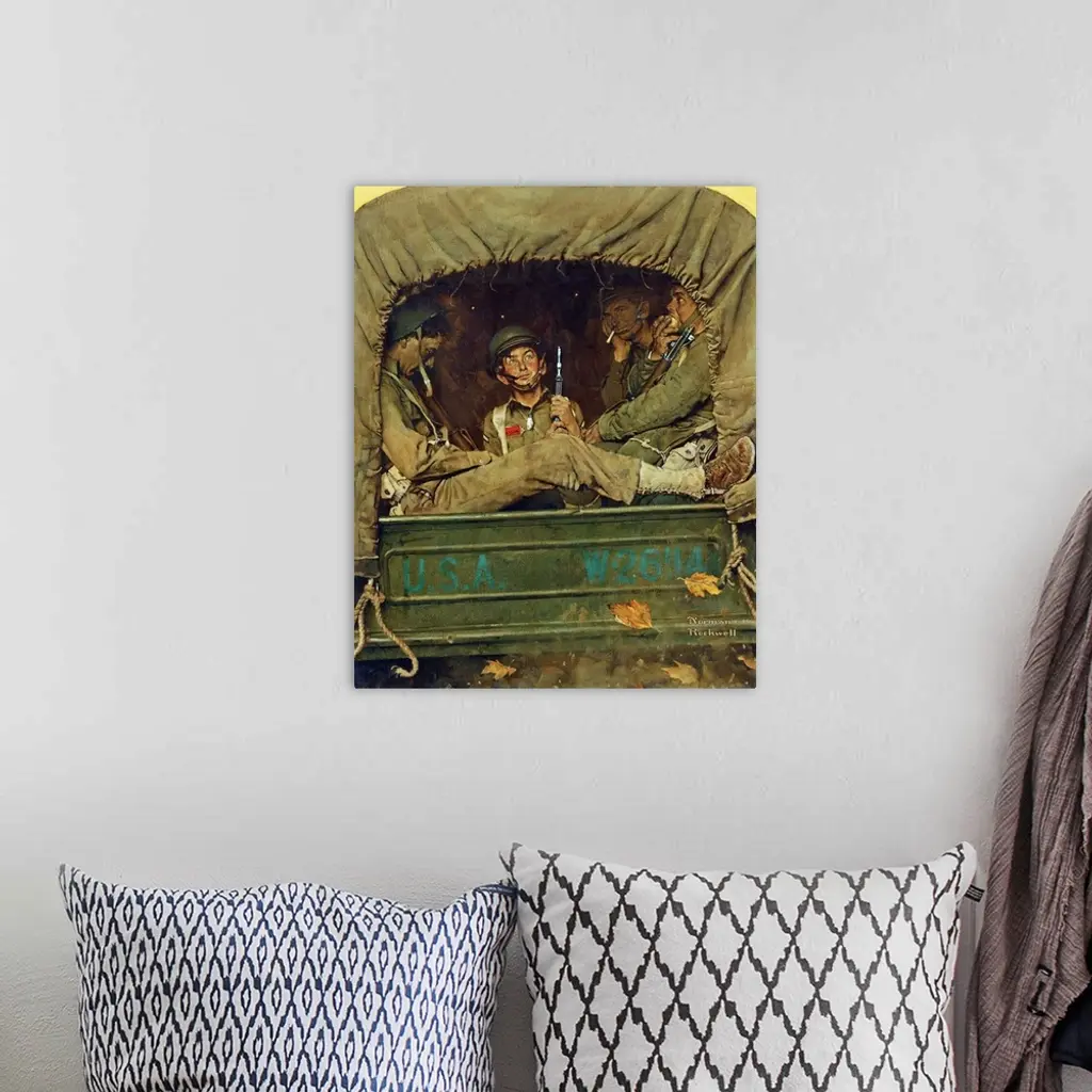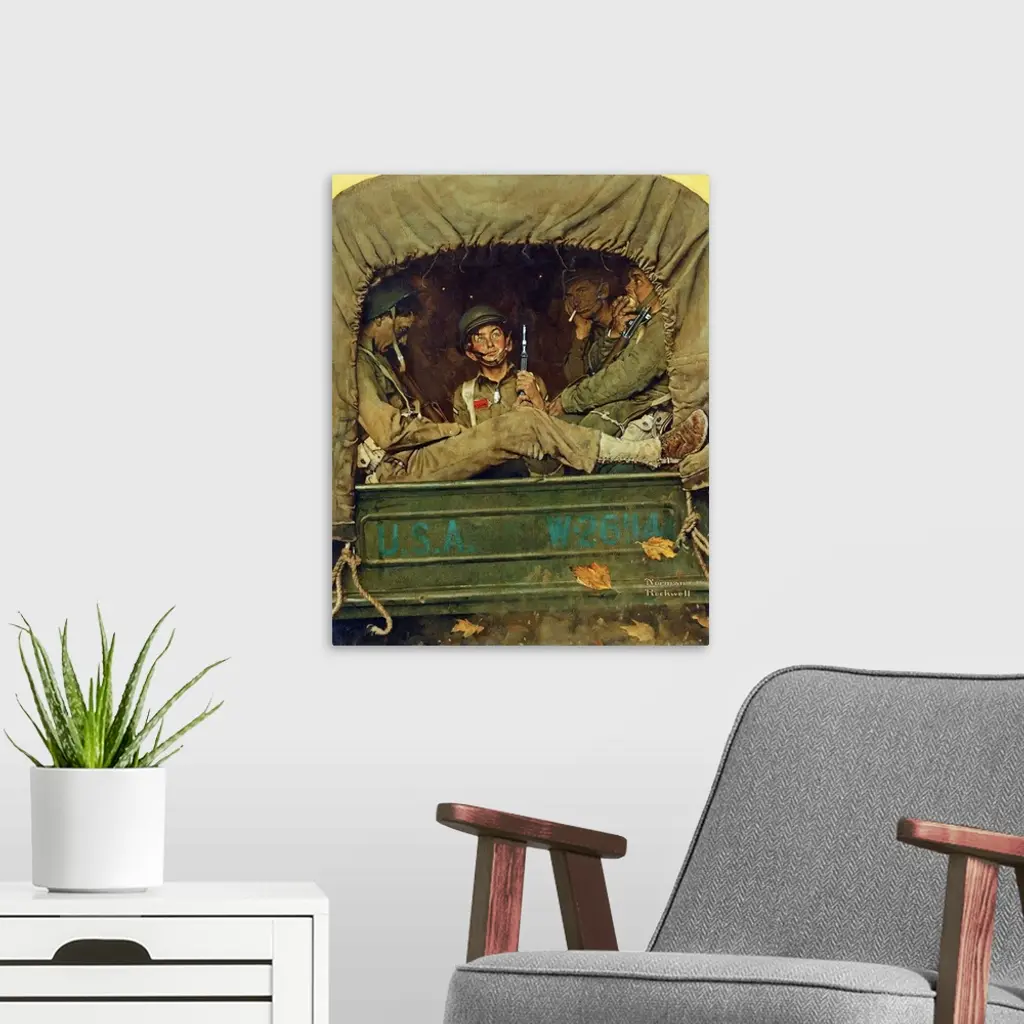 Distant from the activities of the war raging in Europe, Norman Rockwell was challenged to record his interpretation of the effects of World War II on servicemen, and on Americans at home. Approved by the Norman Rockwell Family Agency