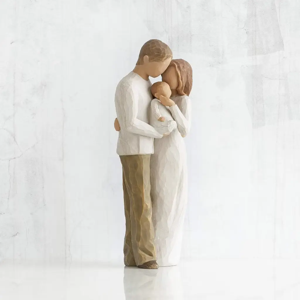 Willow Tree — Our Gift beautifully symbolizes the joy and wonder of welcoming a new child. The figure shows two parents lovingly holding their baby together, capturing the shared happiness and tenderness of family. Its heartfelt design makes it a timeless keepsake for celebrating new beginnings and the precious gift of life.