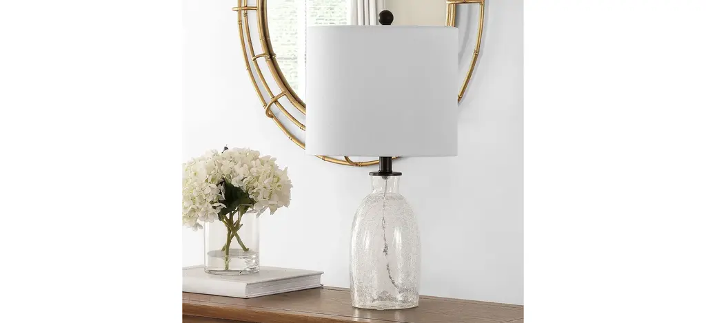 Perfect for illuminating minimalist spaces, this Wilsa Glass Table Lamp is at once simple and stylish. Wilsa's smoothly curved clear glass body gently shimmers beneath the soft glow diffused by a white drum shade, giving a subtle sense of depth to any interior.