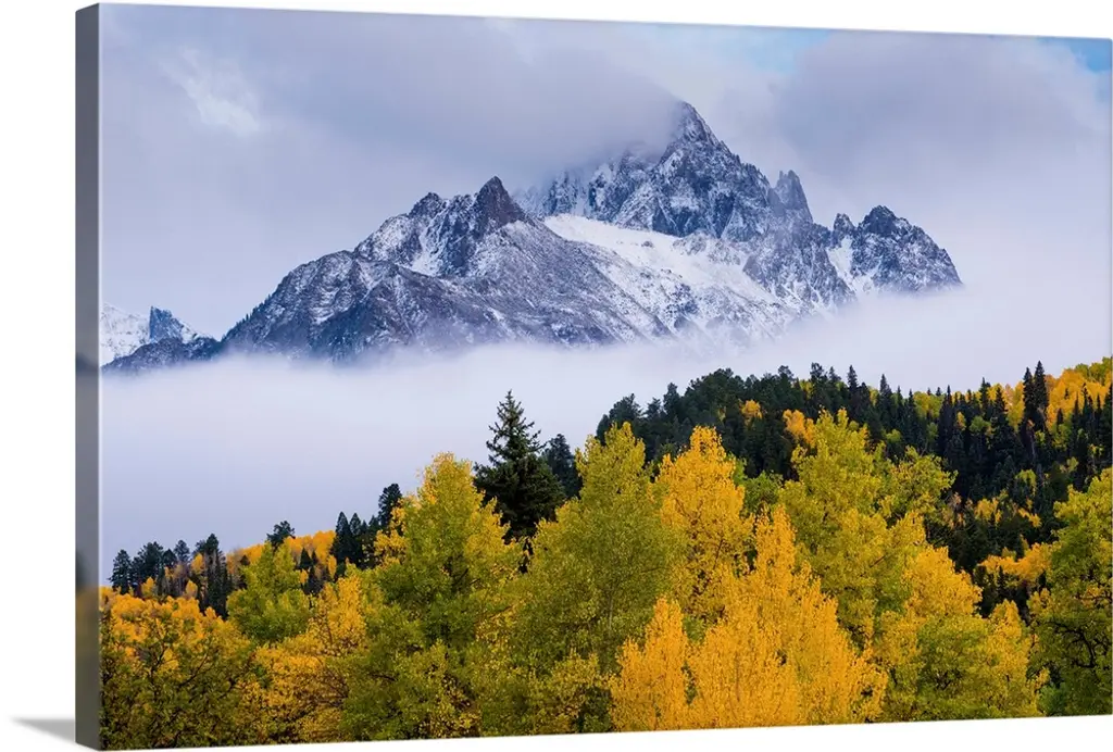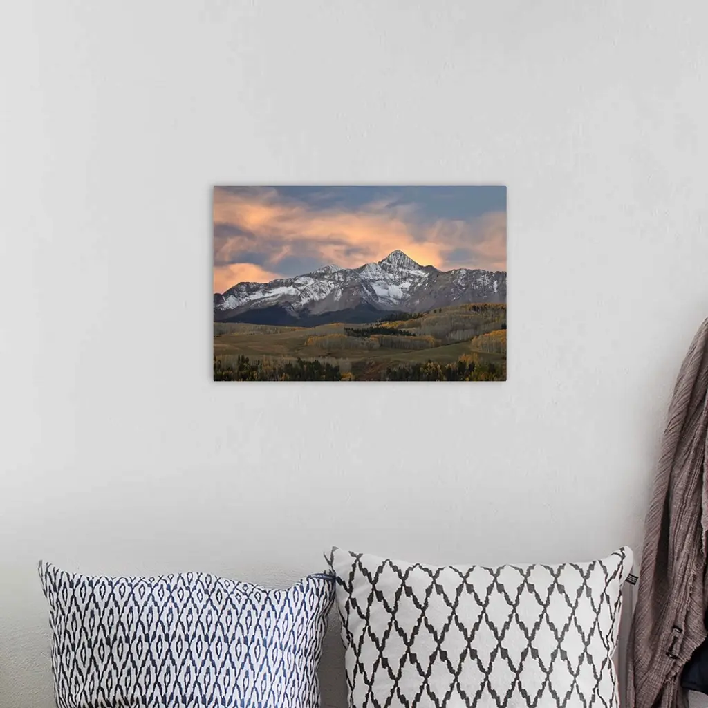 Wilson Peak at dawn with a dusting of snow in the fall, Uncompahgre National Forest, Colorado, United States of America, North America.