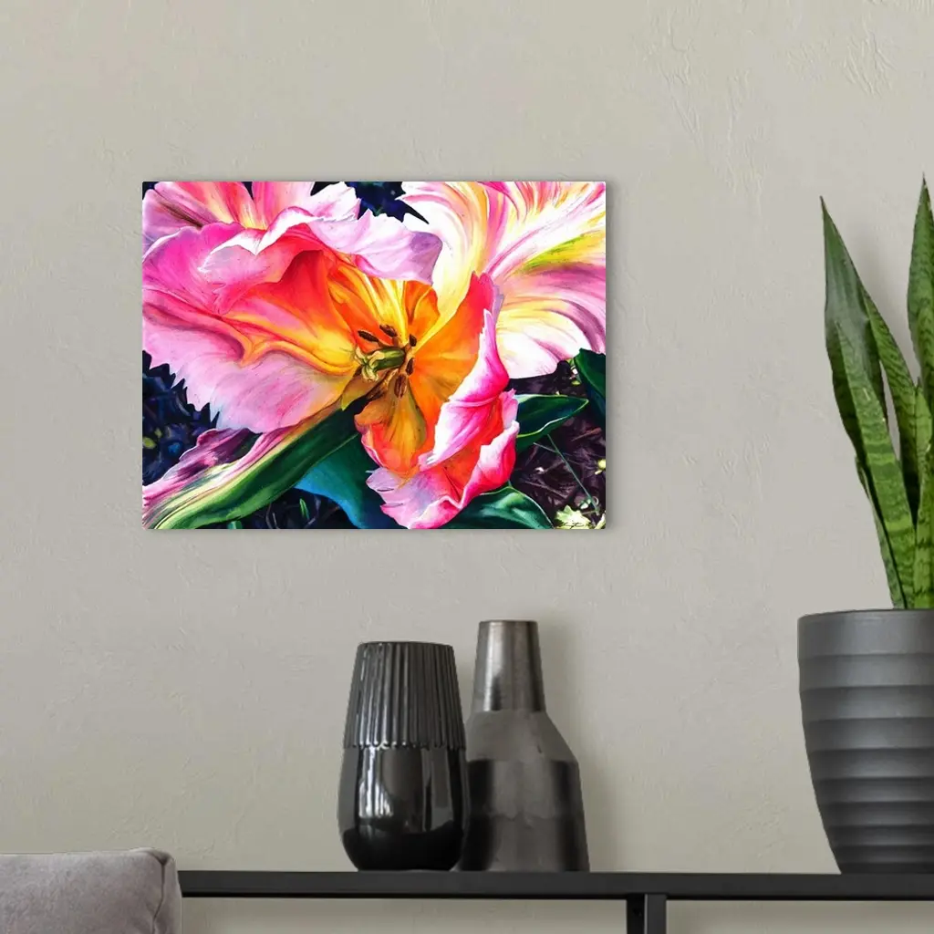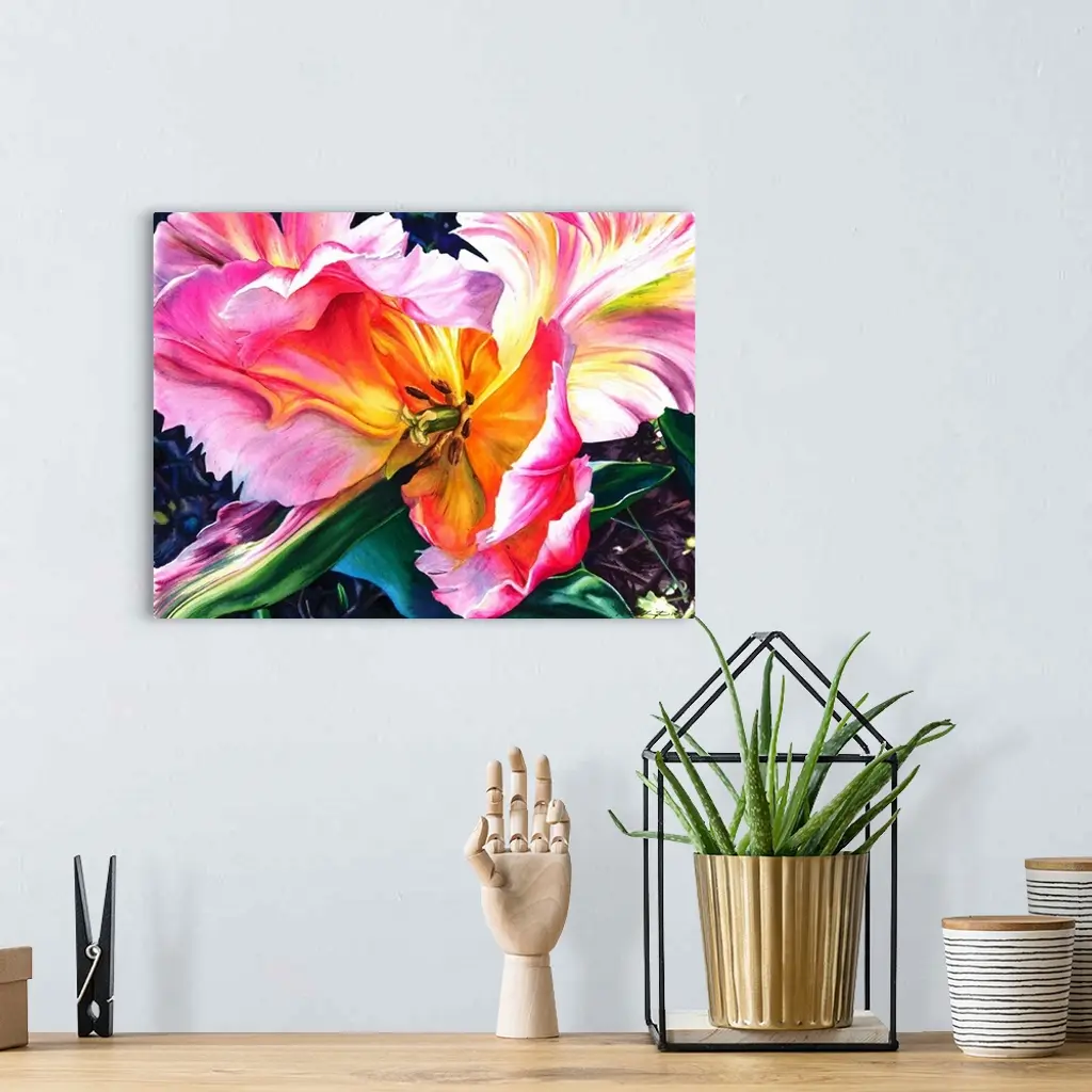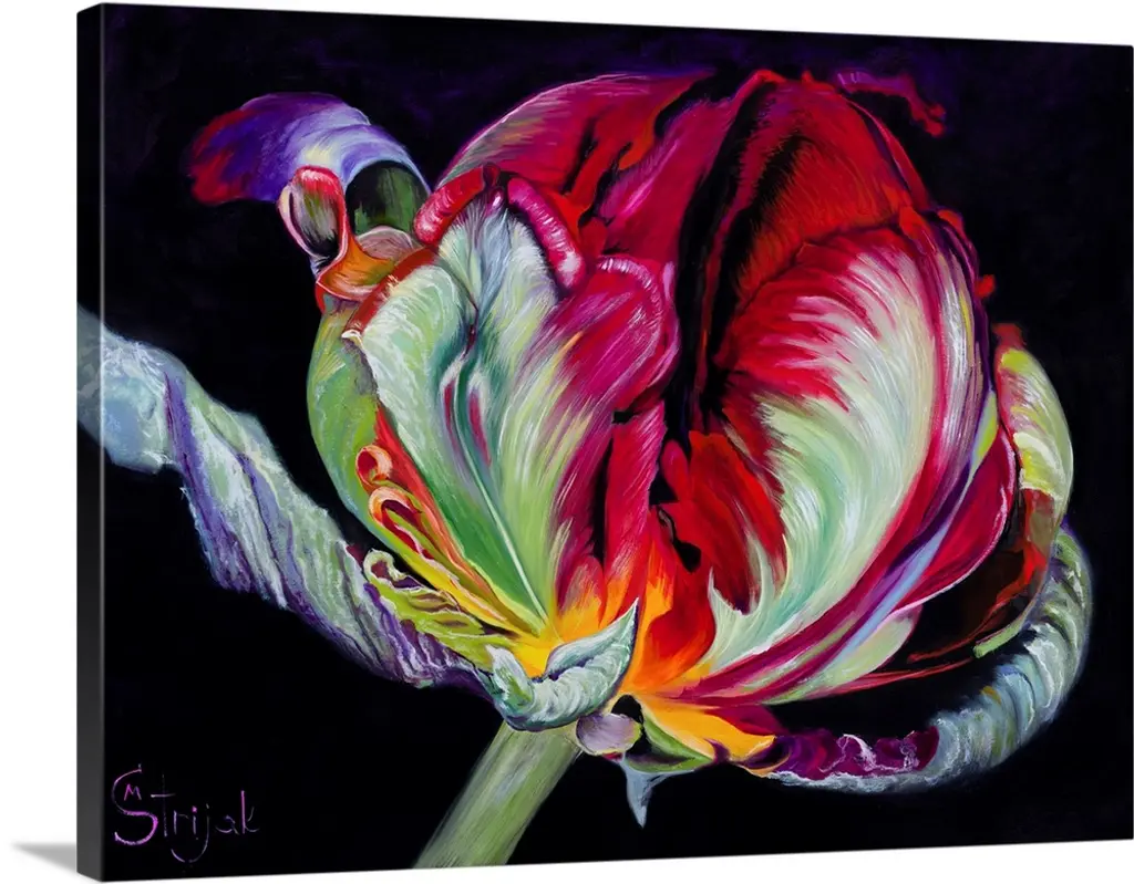 Parrot tulips painted in vibrant watercolor paints.