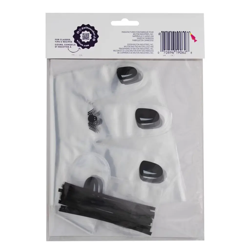 Treat family, friends & neighbors to a tasty treat packed in these scary Wilton Halloween Creepy Hand-Shaped Treat Bags. Great for fall parties, these party bags can be filled with popcorn, pretzels, candy, trail mix, and more. Each bag is made of cellophane and is clear with black fingernails. Each pack contains 15 bags and 15 ties for each bag.