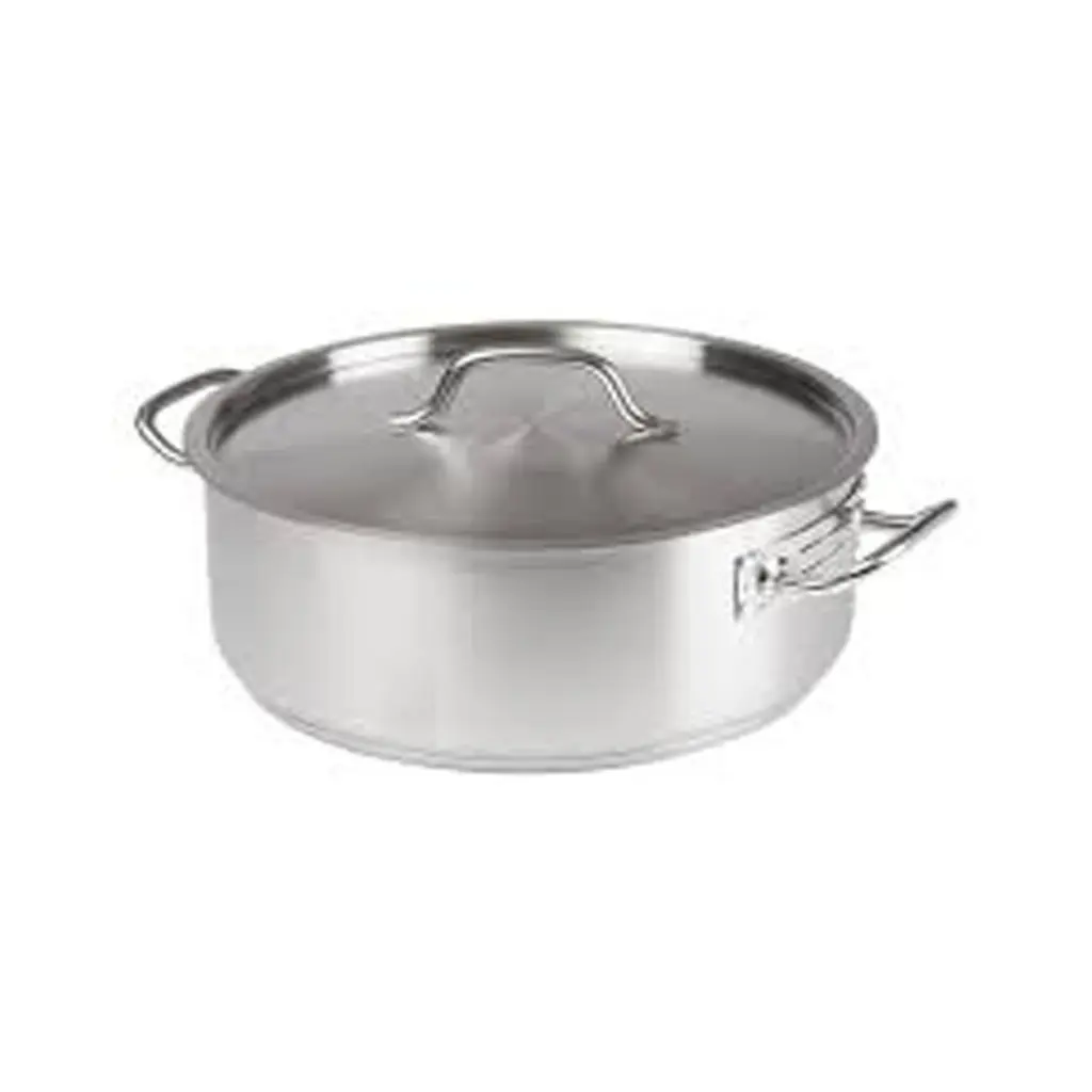 Winco Brazier with Cover is made of Stainless Steel. This model is constructed from stainless steel and comes in a silver exterior finish. The bottom is Tri-Ply, designed to heat food evenly. The handles are welded to ensure durability and a cover is also included. The brazier is also induction ready and NSF listed.