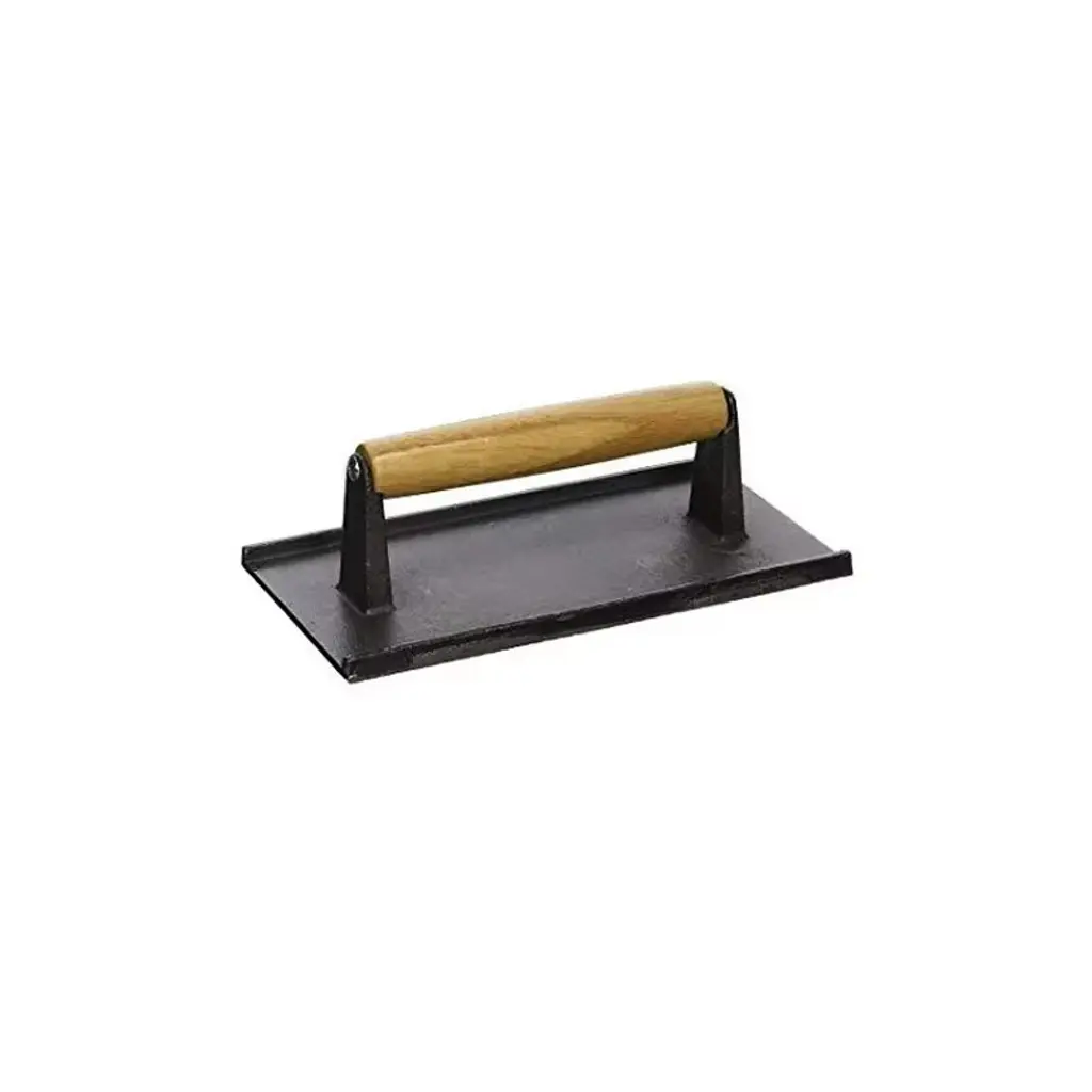 The Winco SWA-2 is a rectangular steak weight. Remove unwanted fat from your meat and poultry using this 2 pound steak weight. The cast iron flat surface that presses down on meat for thorough and even cooking. There is also a wood handle so the weight can be safely lifted from hot surfaces.