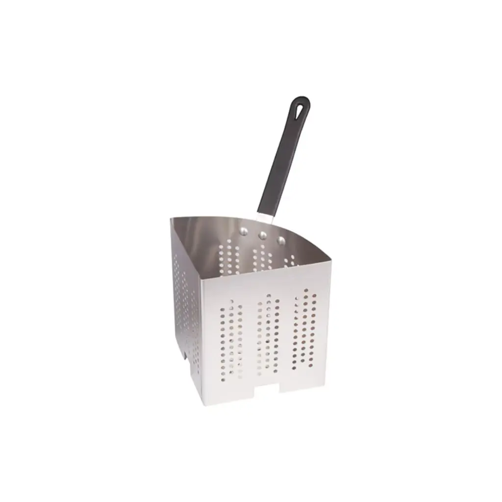 The APS-PT is a pasta pot with a capacity of 20 quarts. This model is constructed from aluminum and comes in a silver exterior finish. The pot features comfortable riveted handles and the 3.5mm thickness allows even distribution of heat. Aluminum pot with riveted handles; for pasta-cooker set APS-20. 14 inch top inner diameter, 14-3/8 inch top outer diameter, 7 inch high on inside, 7-1/4 inch high on outside, 3/16 inch thick.