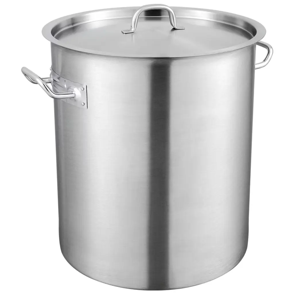 Featuring a tri-ply heavy duty bottom with aluminum core, the Winco stock pot provides excellent heat conduction while its stainless steel construction ensures that it can survive in even the busiest of commercial kitchens. Thanks to its welded-on handles, this stock pot is easy to transport from the counter top to the stovetop. This stock pot comes with a snug-fitting lid to seal in heat and moisture as your food cooks.