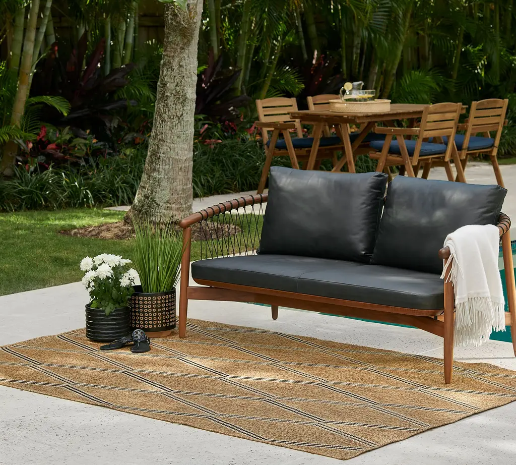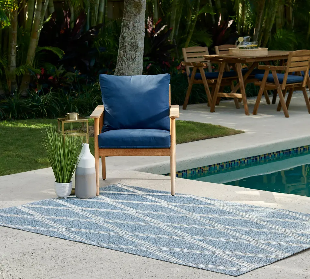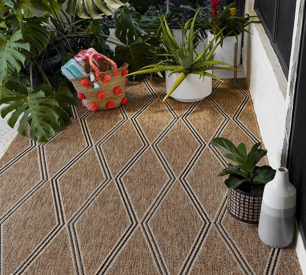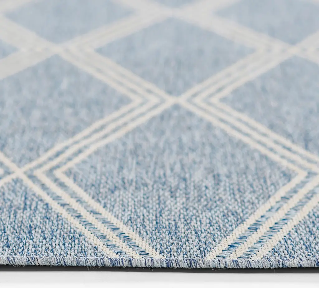 A classic trellis motif is reimagined in contemporary materials with our Winda rug. Adorned with an elongated diamond pattern, it features a textural flat weave crafted of synthetic materials for easy care and long-lasting beauty. Weather-resistant with a nature-inspired palette, the rug is perfect for use indoors or out.