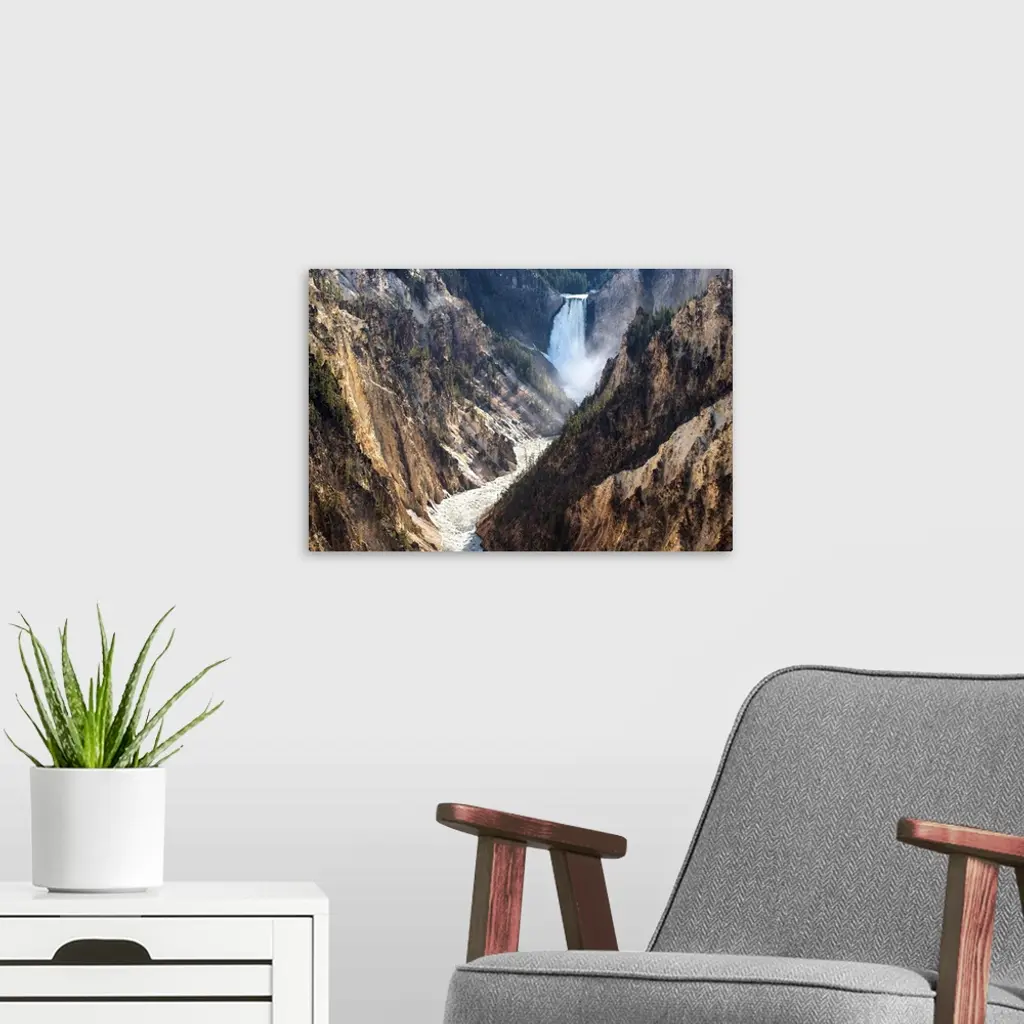 Winding Yellowstone River With Lower Falls, Yellowstone National Park