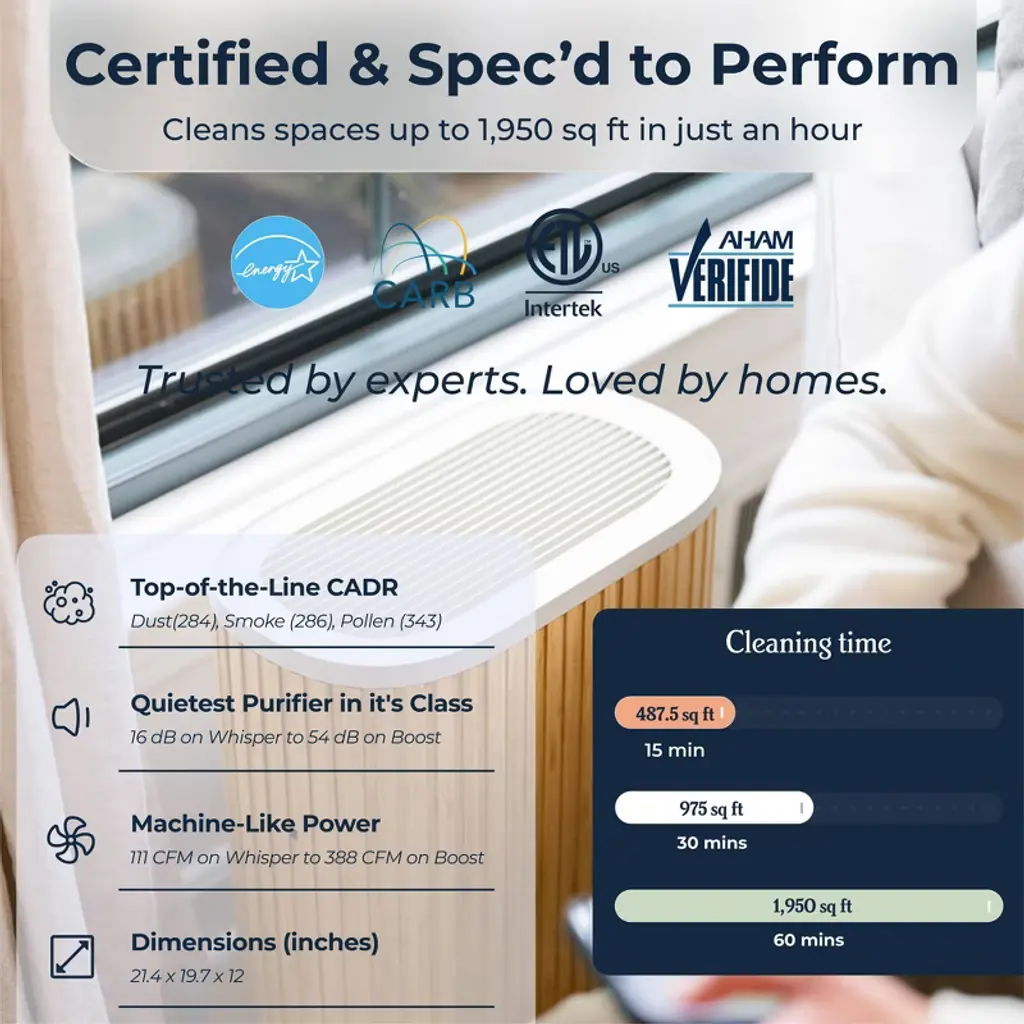Elevate your health and well-being with the Windmill Air Purifier, a game-changer for transforming your indoor air quality and creating a healthier you. The advanced medical-grade HEPA filter helps capture 99.97% of harmful particles (down to .3 microns) like allergens, bacteria, mold, and pet dander, clearing the path to better health. Plus, our activated carbon filter layer captures smoke, odors, and other volatile organic compounds (VOCs). All this with a sleek, award-winning design and ultra-quiet operation! And, with real-time air quality monitoring and smart app connectivity, you’ll have complete control over the air you breathe every day. Invest in your health and discover the wide-ranging benefits of purified, clean air.