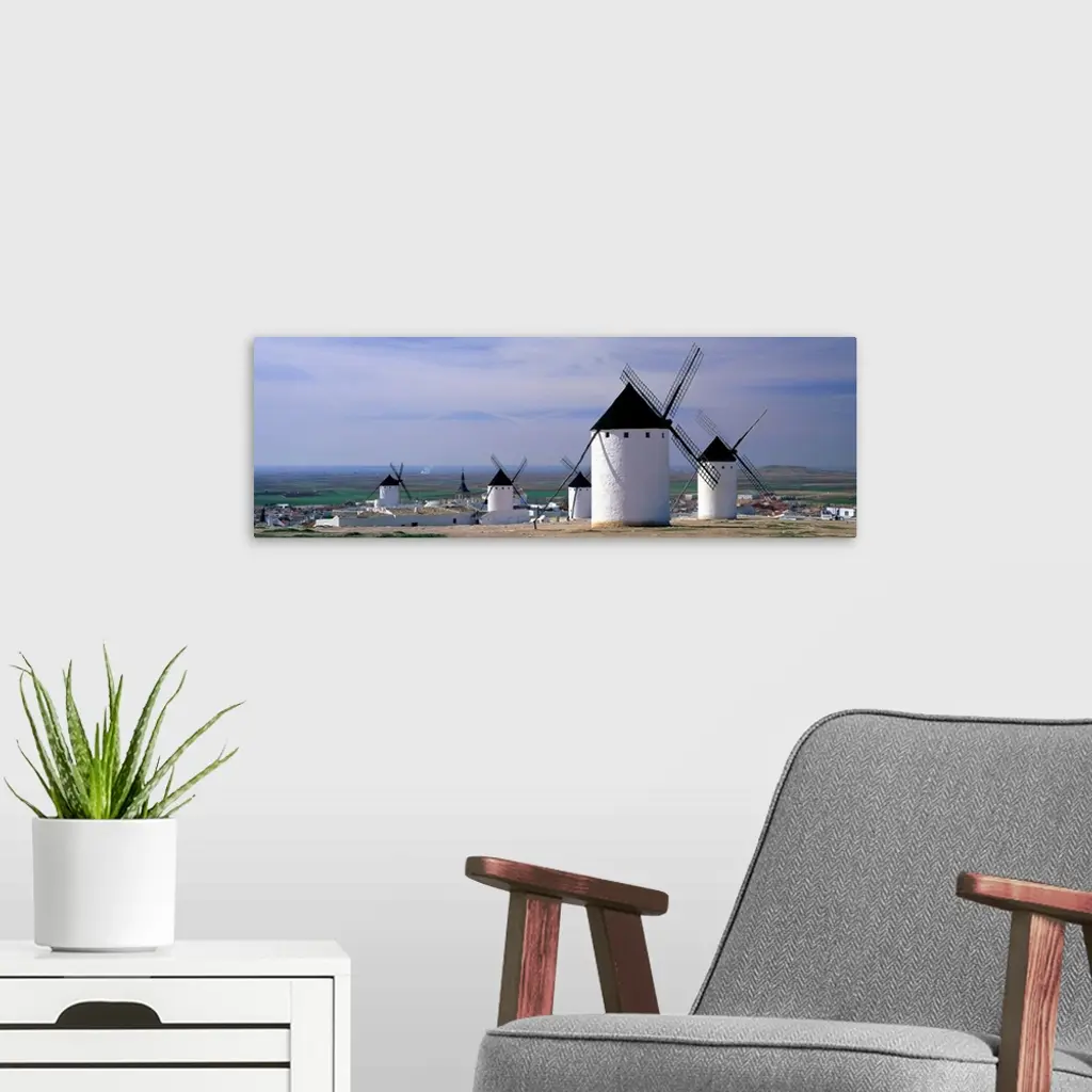 Windmills LaMancha Spain wall art for home and office decor. Discover canvas art prints, photos, mural, big canvas art and framed wall art in GreatBigCanvas.com's varied collections.