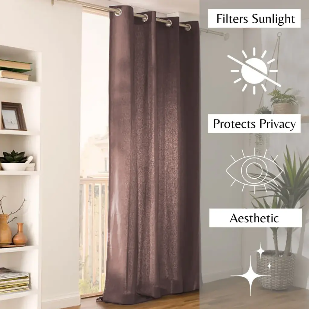 • INTEMPORARY STYLE: Our brown cotton curtain has timeless appeal, adding depth and warmth to any room''s decor with its rich color• PURE COTTON COMFORT: Enjoy the luxurious feel of 100% cotton, offering a soft texture that complements the comfort of your home• METAL GROMMETS: Equipped with sturdy eyelets, this modern drape ensures smooth hanging and adds a touch of elegance to any room• VERSATILITY: Whether living room or bedroom, this universal charm of this curtain enhances the privacy and style of any space• PERFECT FIT: With dimensions of 95x55 inches, this curtain panel covers a full-length window and provides light controlIntroduce timeless elegance to your interior with our 100% Cotton Mocha Window Curtain. The light-filtering capability gently bathes your room in sunlight, creating a serene ambiance. Moreover, the window curtain ensures your privacy, perfect for those lonely moments. Also, its generous dimensions adapt to a wide range of window sizes. This modern drape offers great versatility in your home. The rich mocha shade of this decorative panel effortlessly enriches any room, adding depth and warmth to your decor. Furthermore, the cotton material adds a layer of texture and ensures durability and ease of care. Installation is a breeze, allowing you to refresh your space with minimal effort. This drape is designed for those who appreciate both aesthetics and practicality in their decor. Additionally, it is easy to maintain, making sure your curtain panel remains a lasting element of elegance in your home. Sophisticated and practical, our 100% Cotton Mocha Window Curtain is an essential complement for anyone looking to enhance their living environment. Imported from France, Made in China