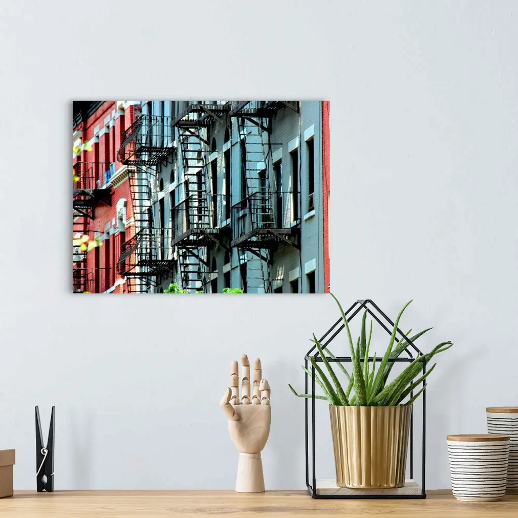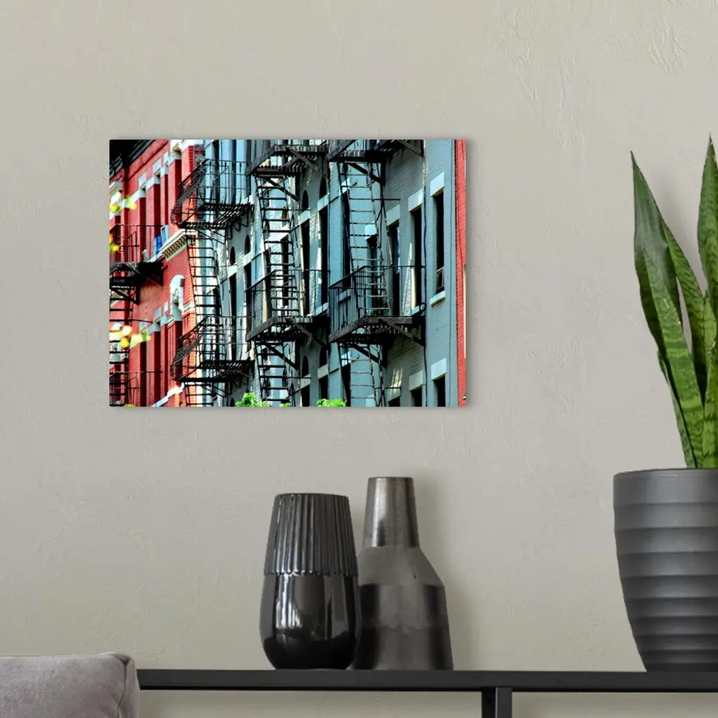 Windows and emergency stairs in New York City. wall art for home and office decor. Discover canvas art prints, photos, mural, big canvas art and framed wall art in GreatBigCanvas.com's varied collections.