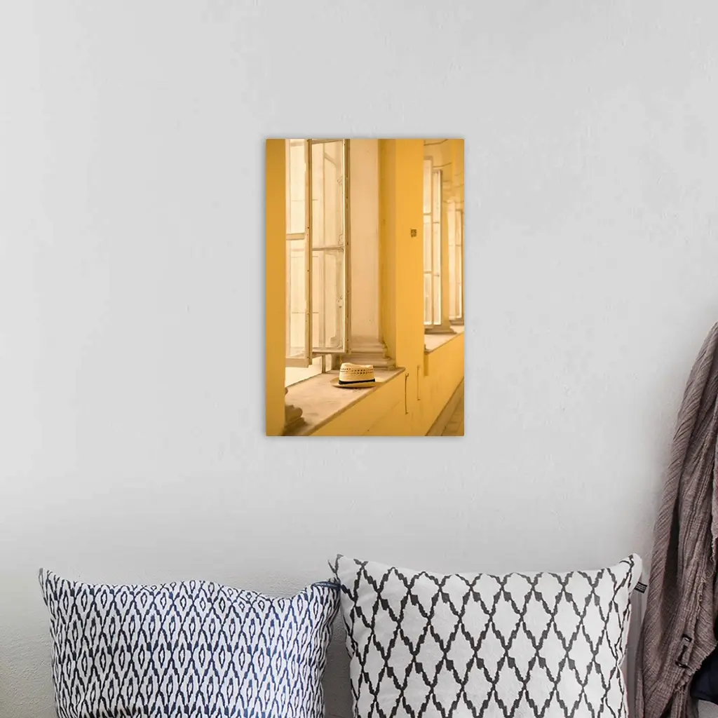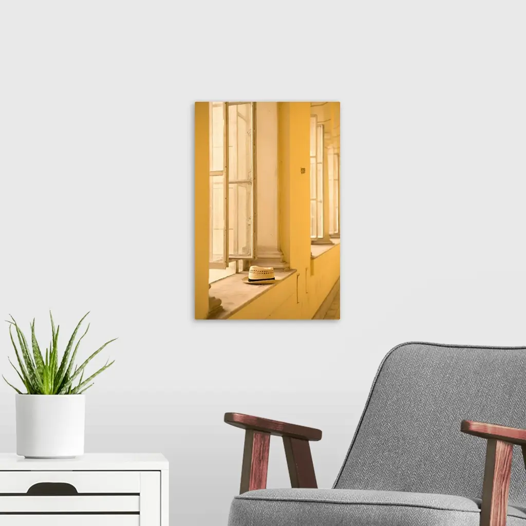 Minimal photograph of a hat resting on a window ledge in The Museum of the Revolution, Cuba.