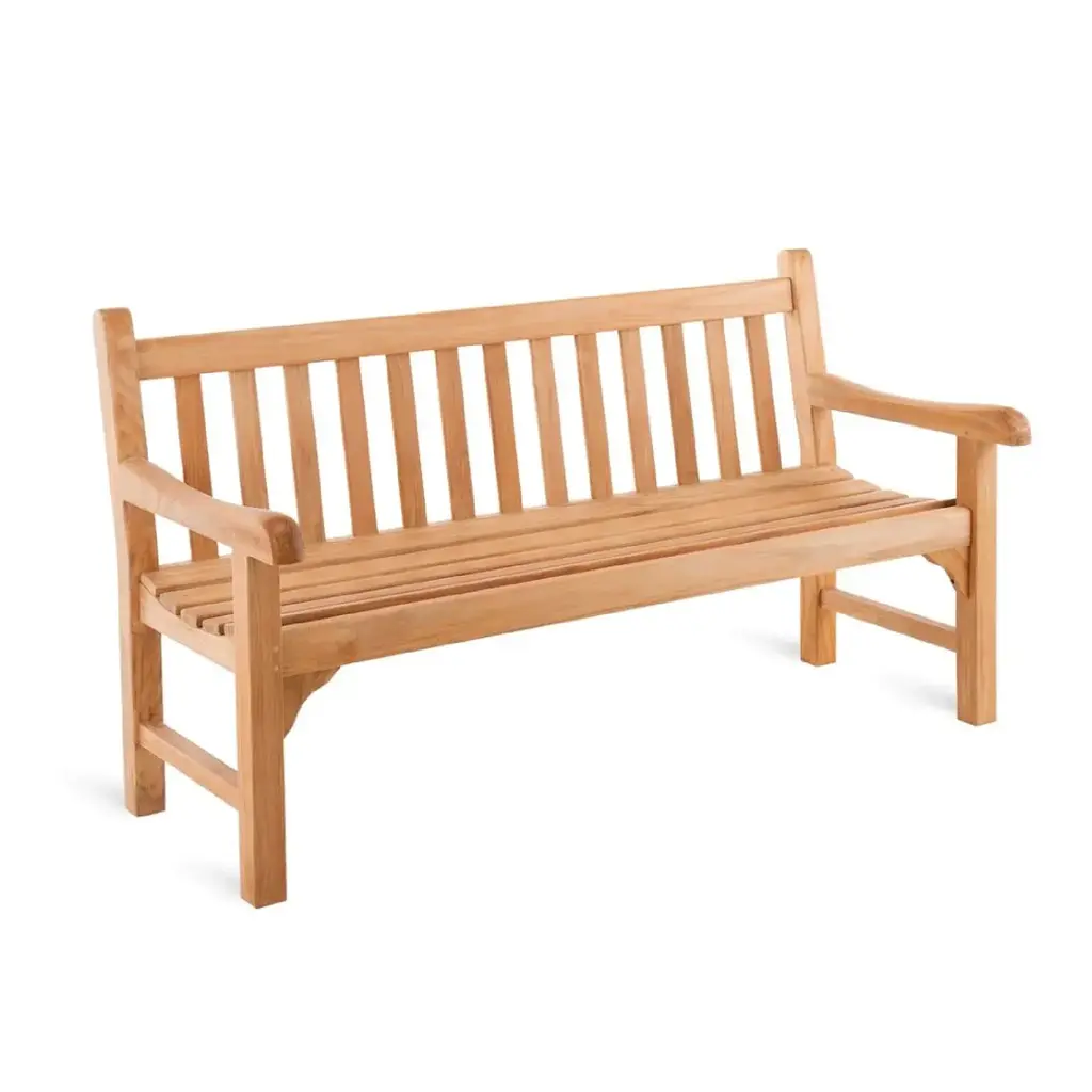 A clean design and solid teak wood construction gives the Windsong outdoor bench its natural beauty. Made to withstand the elements, this stunning patio seating provides a comfortable spot for two to unwind in the garden or on the deck.