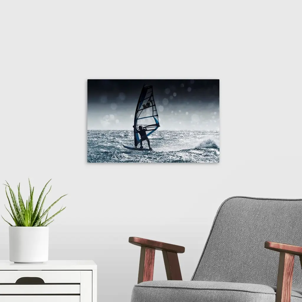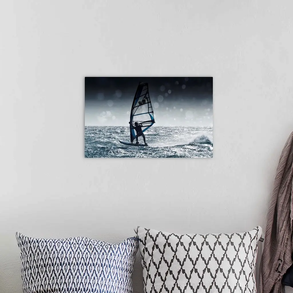 Windsurfing With Water Drops On Camera Lens, Tarifa, Andalusia, Spain wall art for home and office decor. Discover canvas art prints, photos, mural, big canvas art and framed wall art in GreatBigCanvas.com's varied collections.