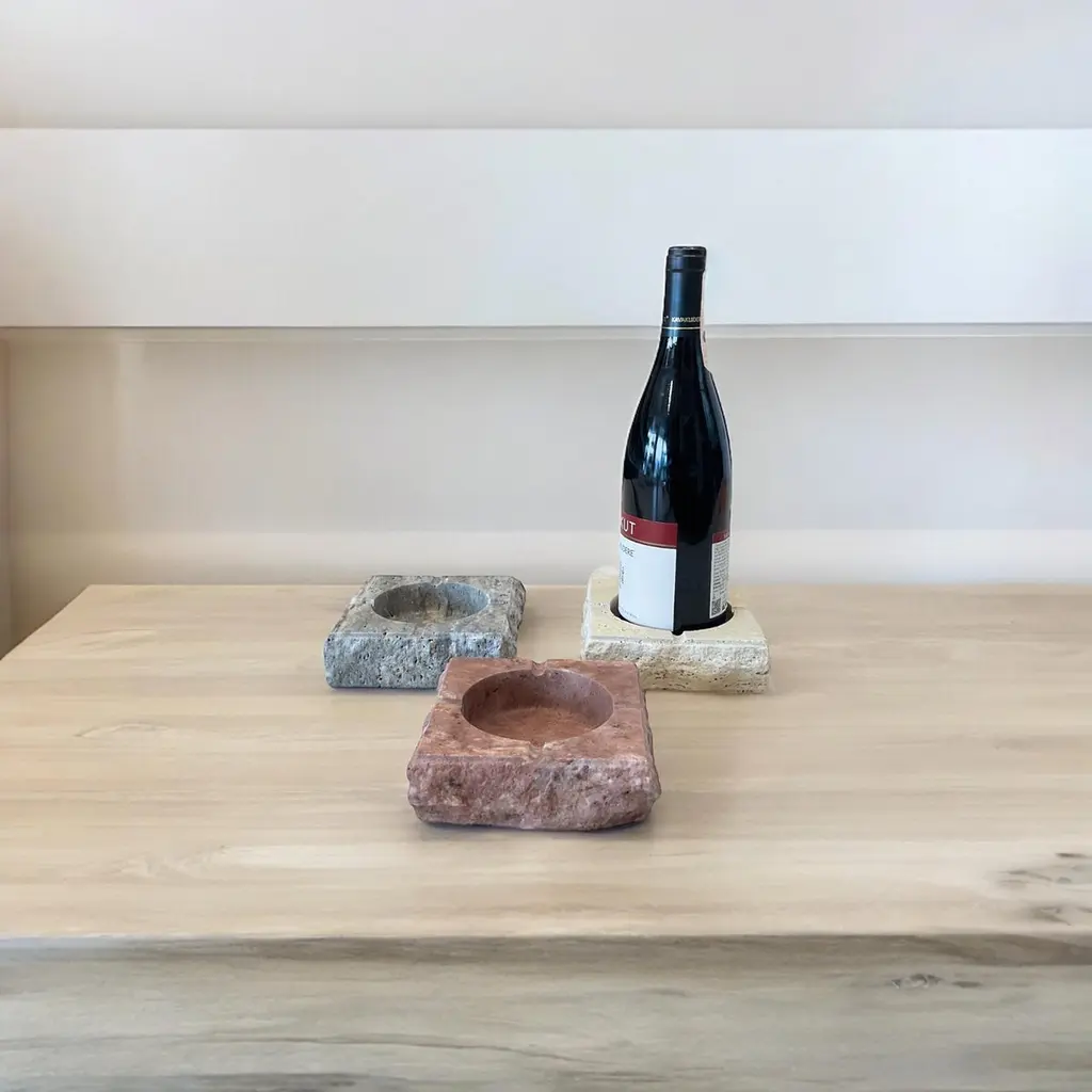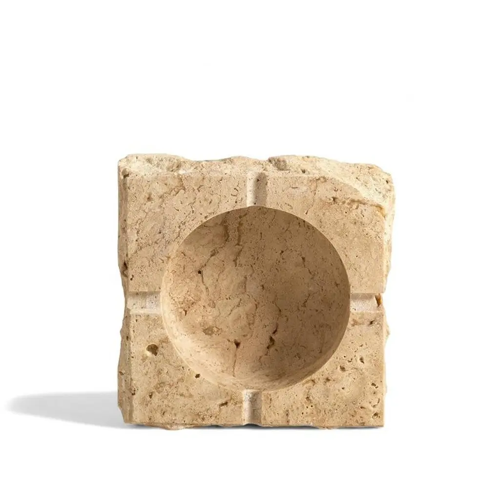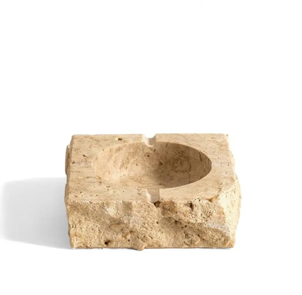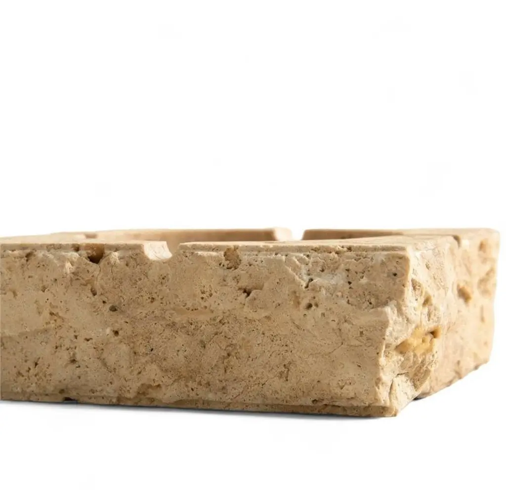 Handmade Travertine Multi-Purpose Holder, a versatile and elegant piece crafted from natural travertine stone. While originally designed as an ashtray, this unique item is perfect for various uses such as storing small items, holding wine bottles, or organizing your jewelry.Measuring 13 cm x 13 cm x 4 cm (approximately 5.1" x 5.1" x 1.6") and weighing 1.2 kg (2.65 lbs), this holder is sturdy and durable. Its natural stone texture and handcrafted design make each piece one-of-a-kind, adding a touch of rustic charm to any space.The Handmade Travertine Multi-Purpose Holder seamlessly blends functionality with aesthetic appeal. Whether placed in your living room, bedroom, or kitchen, it serves as both a practical solution and a decorative accent. Elevate your home decor with this timeless and versatile travertine masterpiece.