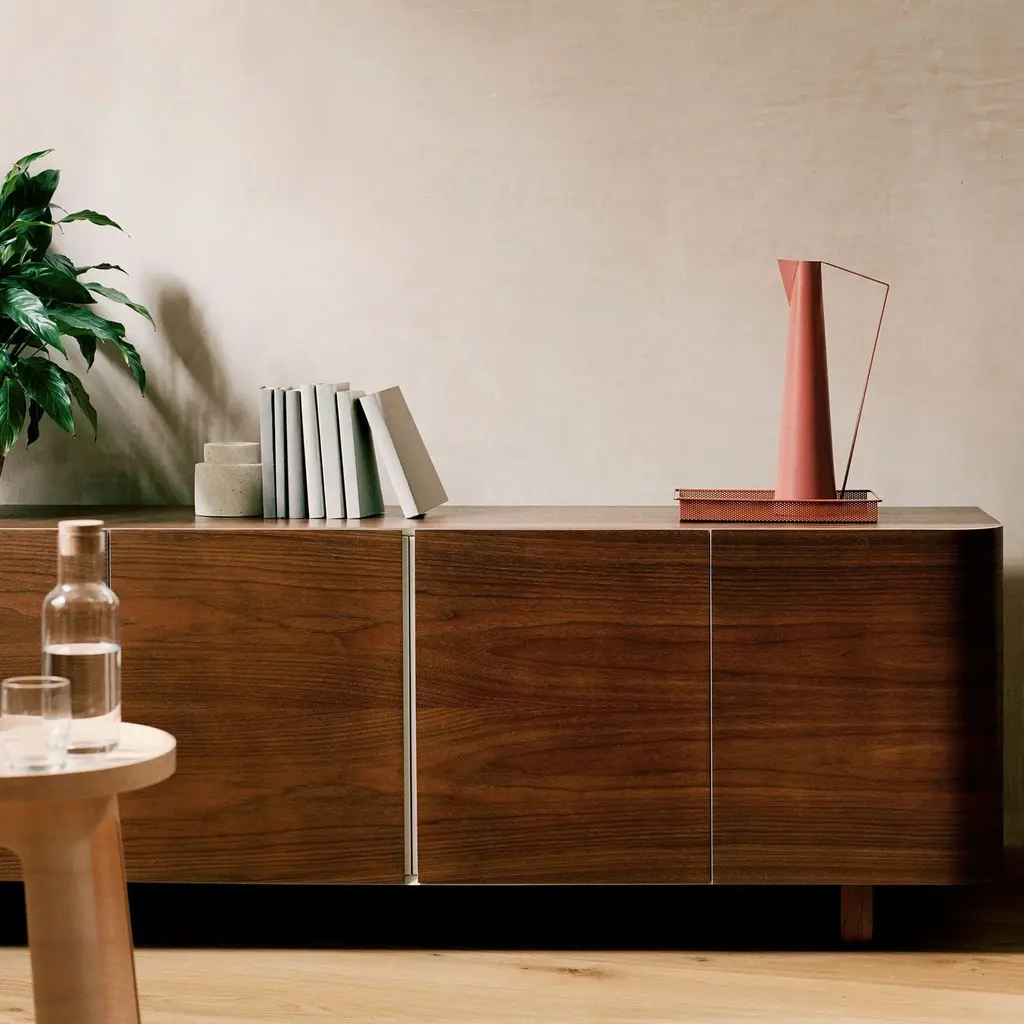 Both elegant and functional, Michael Sodeau’s Wing storage series takes its name from the curved wing-like doors that distinguish the 2-door, 4-door and bedside versions. Crafted by Isokon in London, the furnishings come in a choice of birch, oak or walnut veneer and are finished at the rear as well as the front so they can be placed in view from all sides.