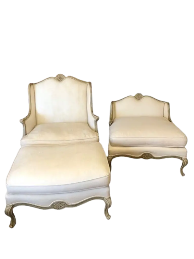 Wingback Pierre Deux Highland House Louis Xv Style Designer Chairs And Ottoman - 3 Pieces