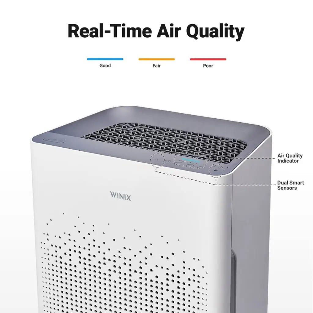 Featuring a 4-stage air purification system, this unit removes 99.99% of airborne particles as small as 0.01 microns in size. Winix’s PlasmaWave® Technology may help to reduce the presence of airborne pollutants, allergens, and impurities. The unit’s built-in Smart Sensors detect and monitor the quality of air in your environment and provides a visual representation of your current air quality. When in Auto Mode, the unit automatically adjusts fan speeds to ensure efficient and cost-effective cleaning. Sleep mode is automatically activated when the room is darkened, providing quiet, energy-efficient operation. The WiFi feature allows you to connect your air purifier to the Winix Smart App and monitor the air quality in your home, control your air purifier, and track filter life.