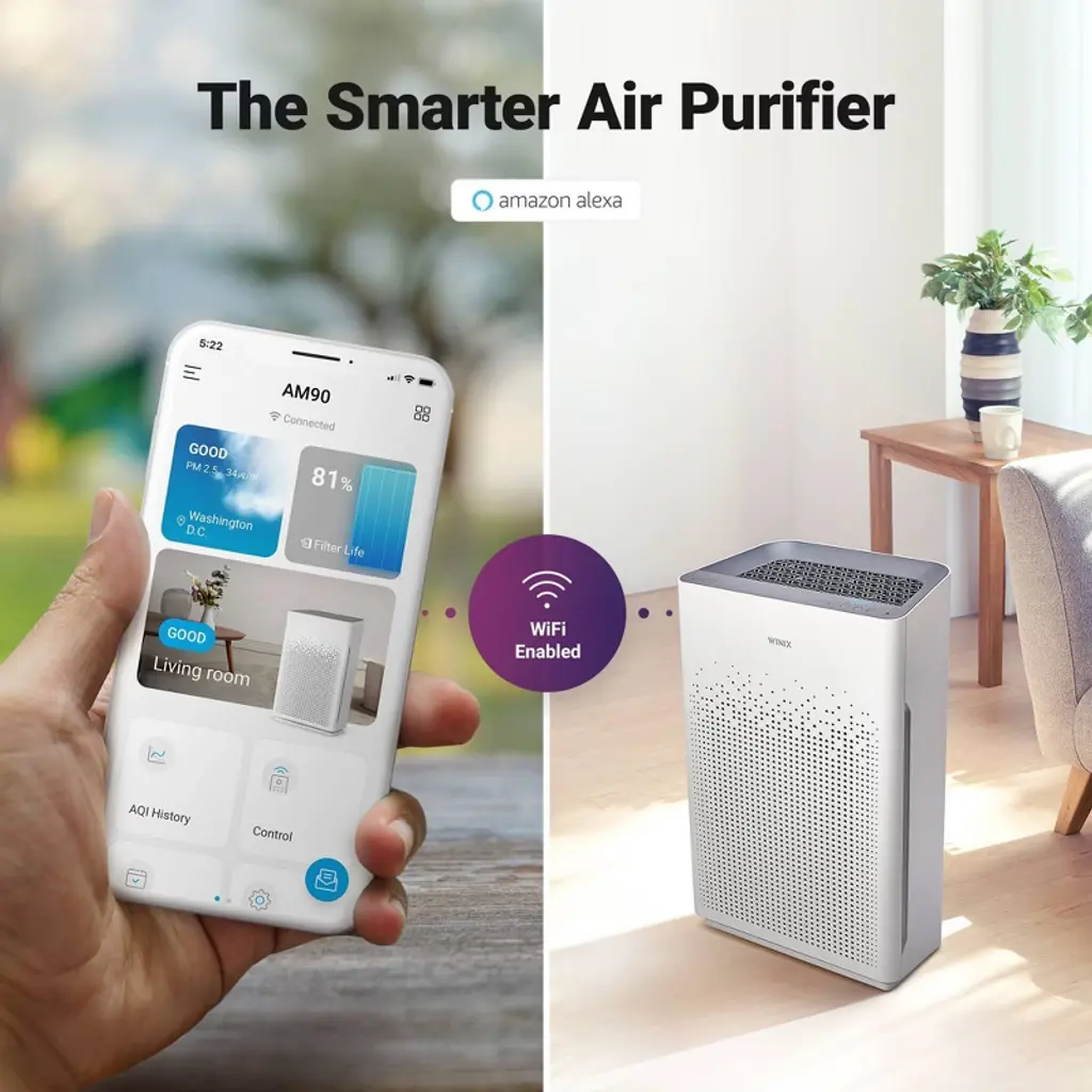 Winix Am90 4 Stage True Hepa Air Purifier With Wi-fi And Plasma Wave Technology: Cadr & Energy Star Certified, 300-900 Sq. Ft.