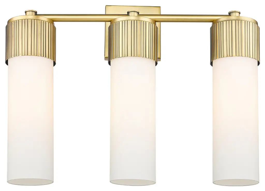 Transform your bathroom into a stylish retreat with the timeless Harlowe 3 Light LED Bath Fixture in winter brass. This piece stands out with its signature Art Deco design elements, characterized by duel opal glass fluted cylinders that deliver a perfectly diffused light, ideal for everyday use or creating a relaxing atmosphere. Perfectly proportioned at 8 inches high and 19 inches wide, this fixture makes a statement without overwhelming your space. It exudes a sophisticated Hollywood glam essence, enhanced by its seamless design and fine detailing. The sturdy steel and glass materials assure long-lasting beauty, while the fixture''s pleasant 3000K light temperature creates a cozy glow. Engineered for convenience and reliability, this LED bath fixture includes three G9 bulbs, each consuming a mere 3 watts, which together yield ample light for all your needs while being energy efficient. The Dry and Indoor Rating, along with its cETL listing, assures you of its safety and quality, making it a distinguished part of the Harlowe Collection. - Dimensions: 8H x 19W x 5D inches - Features a luxurious Winter Brass finish - Condition: New, cETL-Listed - Equipped with 3 energy-efficient G9 LED bulbs - Ideal for dry, indoor environments - Constructed from high-quality steel and glass - Art Deco style from the Harlowe Collection