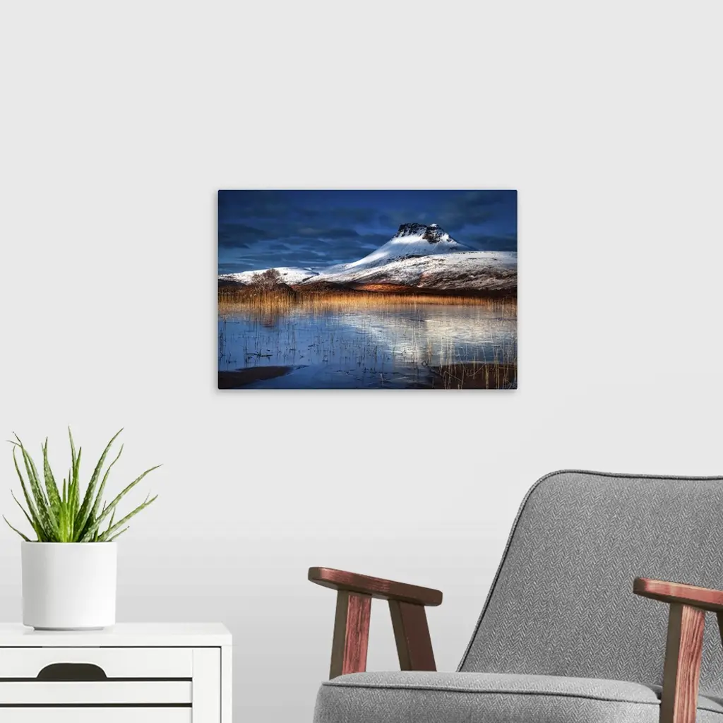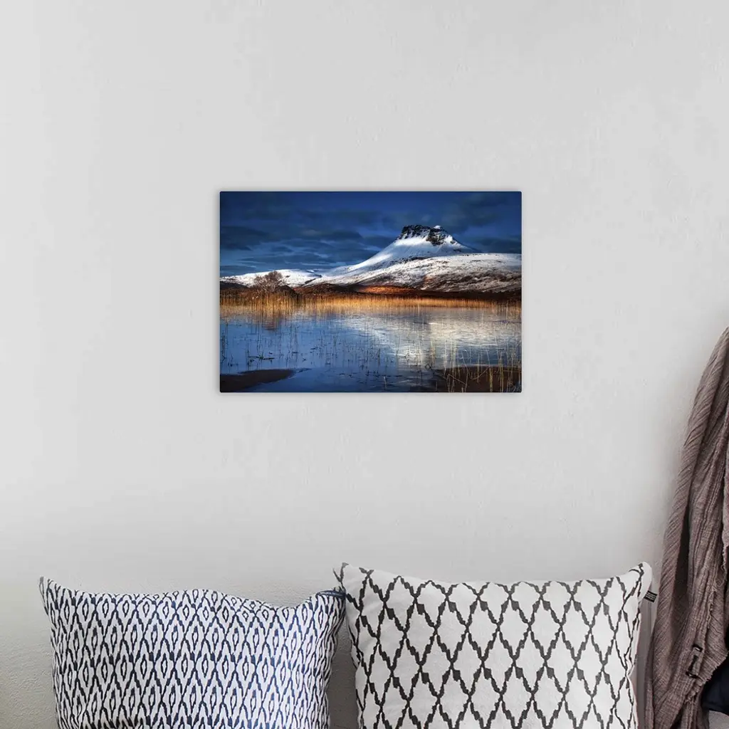 Dramatic snow on mountains in winter in the Scottish Highlands.