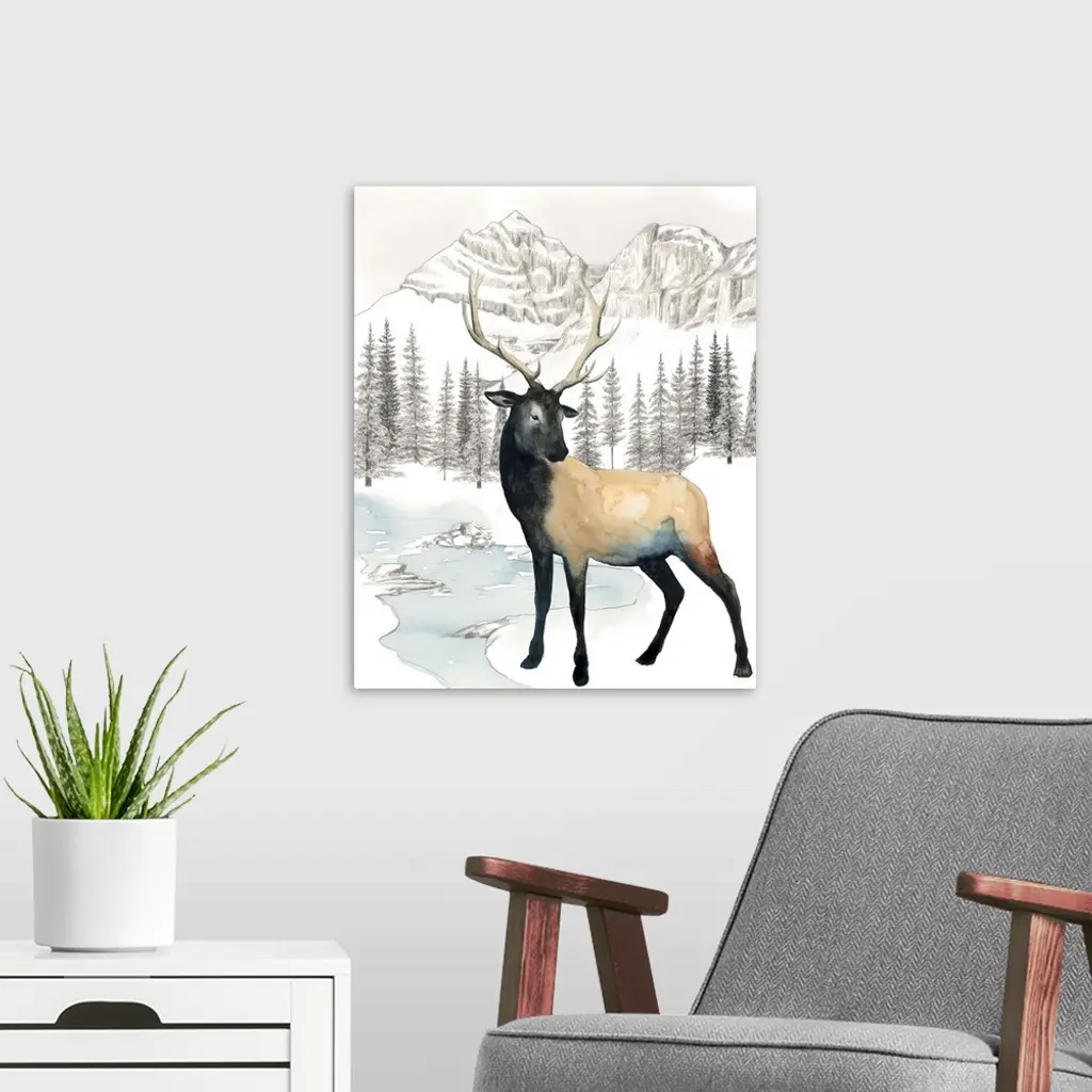 Winter Elk I wall art for home and office decor. Discover canvas art prints, photos, mural, big canvas art and framed wall art in GreatBigCanvas.com's varied collections.