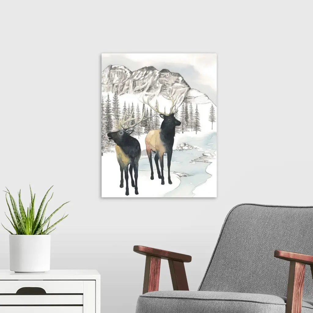 Winter Elk II wall art for home and office decor. Discover canvas art prints, photos, mural, big canvas art and framed wall art in GreatBigCanvas.com's varied collections.