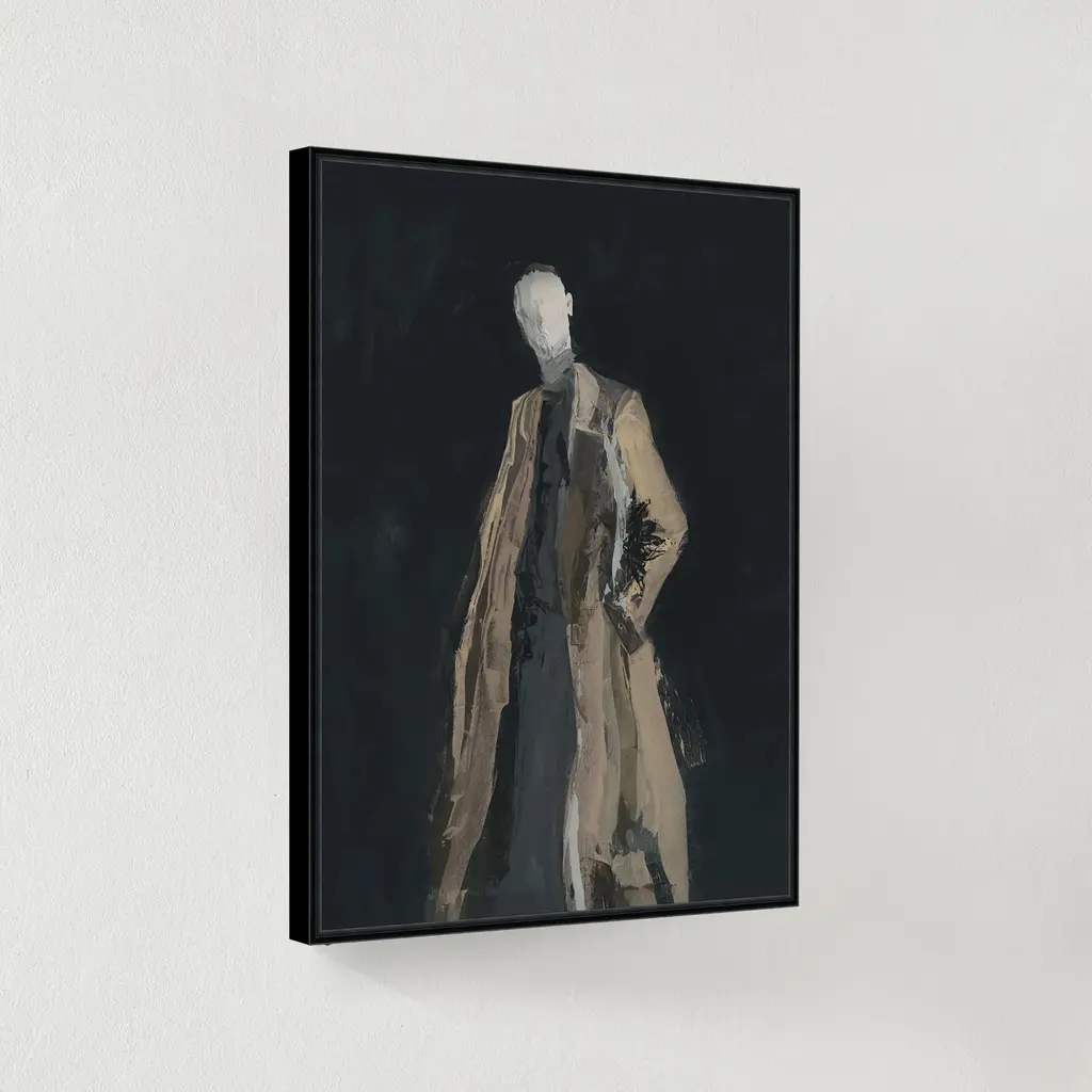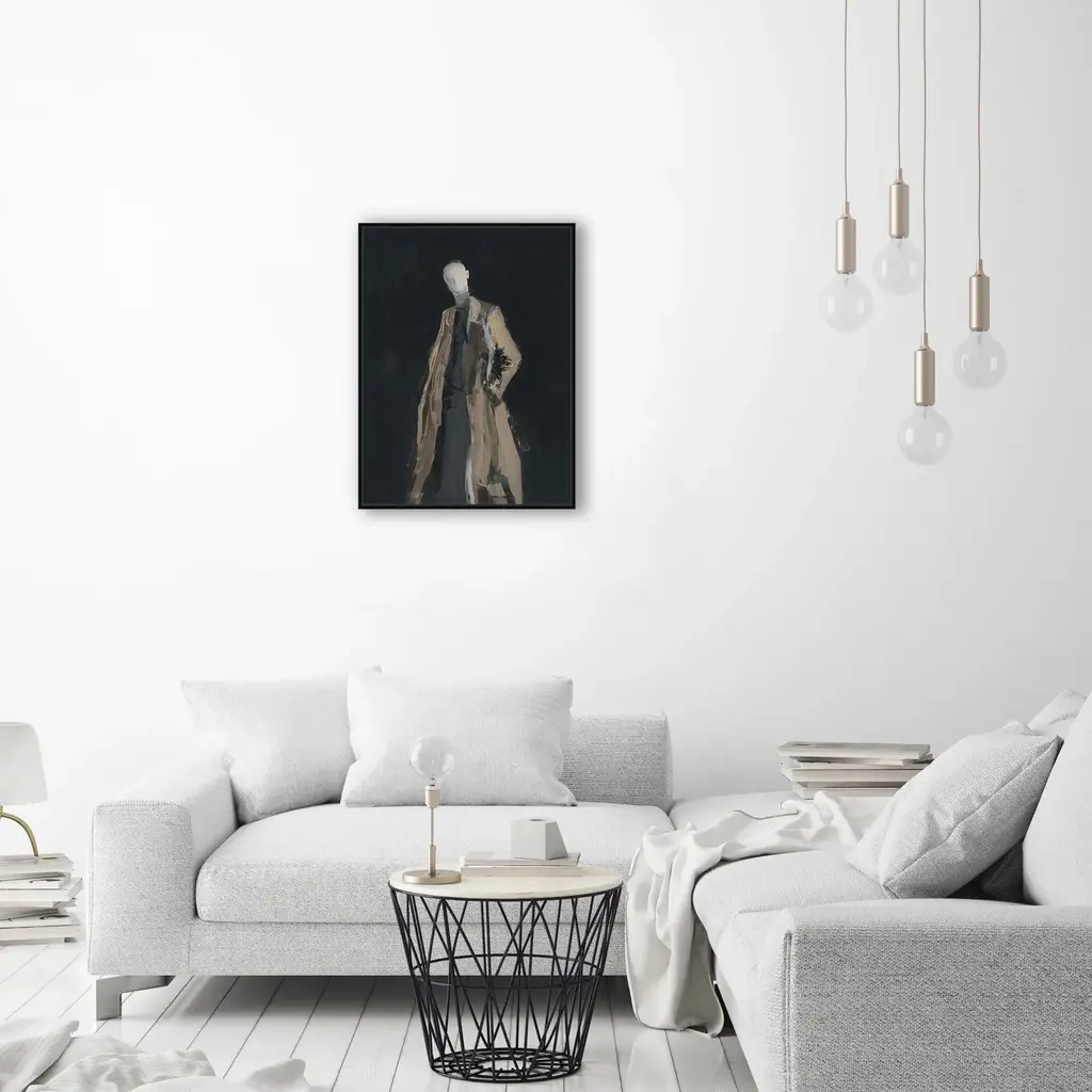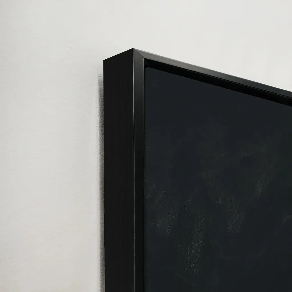 Gallery-wrapped canvas with hand-applied image brush gel finish.Set in a black floater frame.