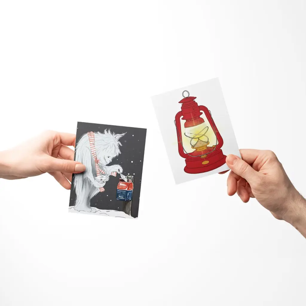 Winter Lamp, Happy Winter, Yeti Sending Letters Winter/holiday/christmas Greeting Card Pack Sets (3 Ct, Assorted) By Ramus & Co