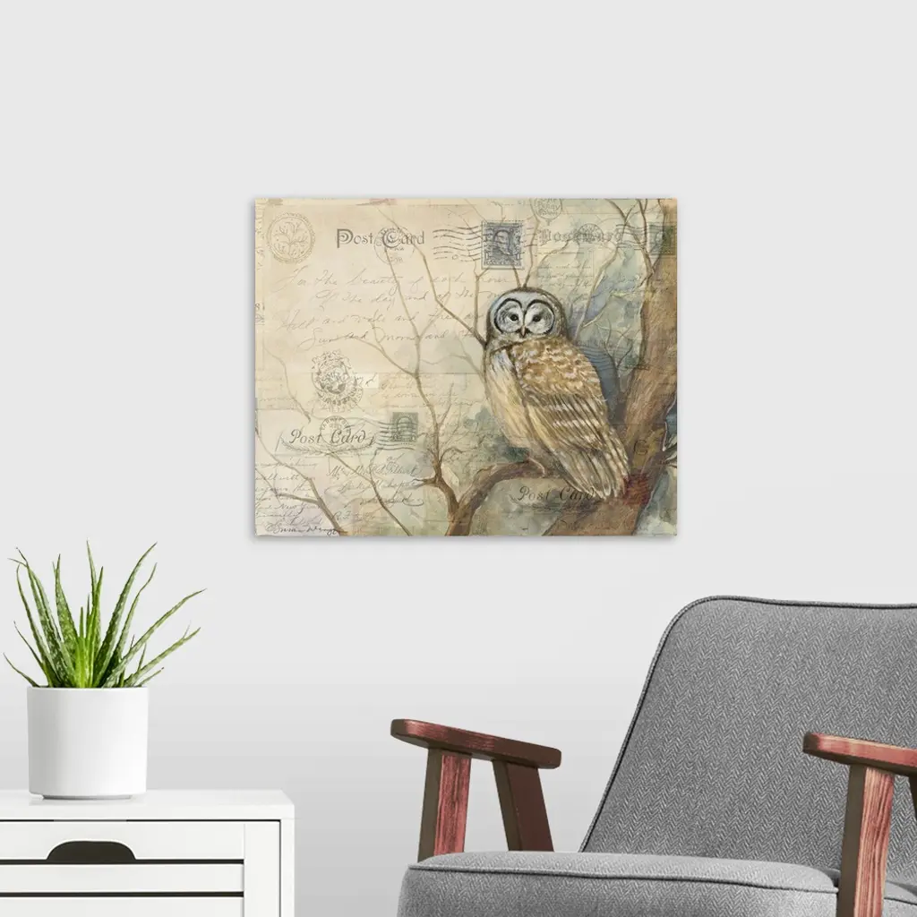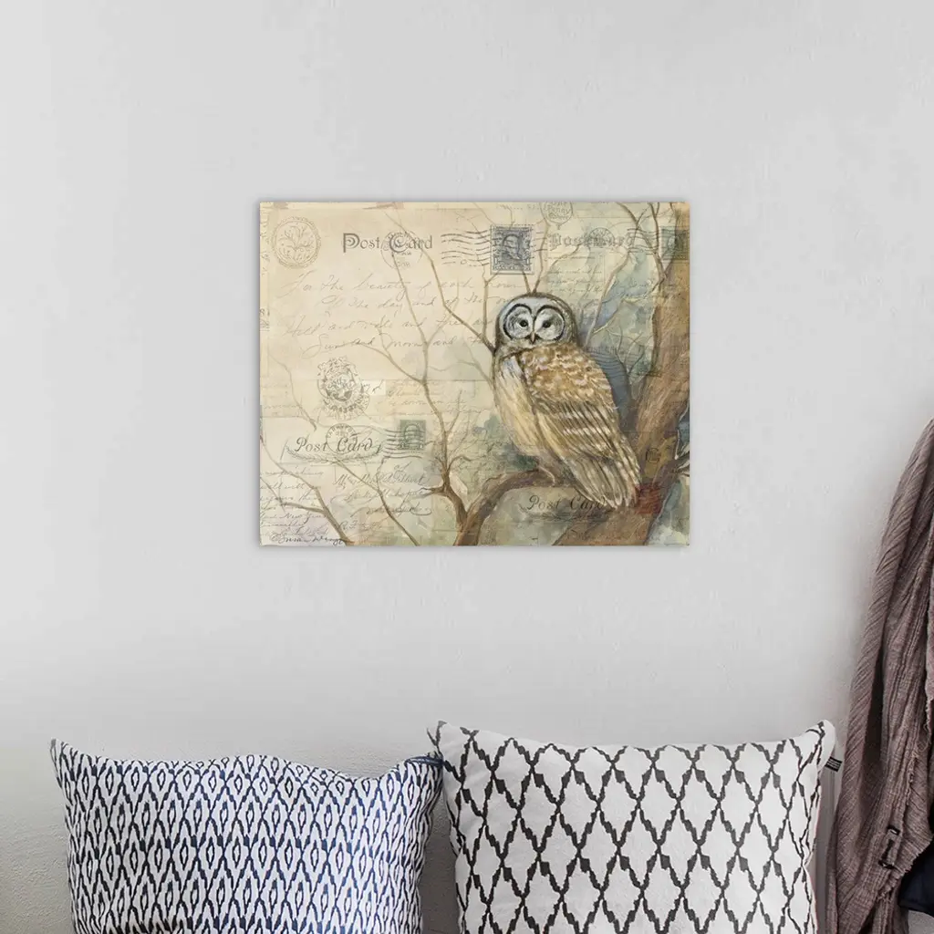 Botanical nature scene features the wise old owlgreat for den, study, bedroom, home decor
