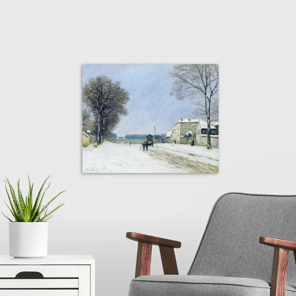 XIL16785 Winter, Snow Effect, 1876 (oil on canvas); by Sisley, Alfred (1839-99); Musee des Beaux-Arts, Lille, France; Giraudon; English, out of copyright