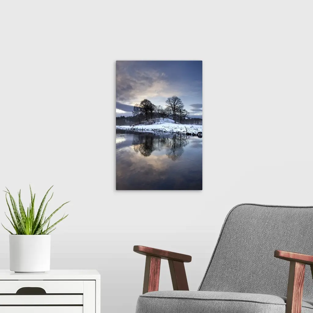 Winter view of River Brathay at dawn, Ambleside, Cumbria, England wall art for home and office decor. Discover canvas art prints, photos, mural, big canvas art and framed wall art in GreatBigCanvas.com's varied collections.