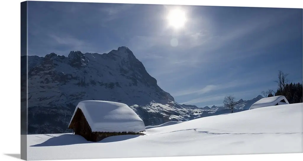 Winter Wonderland In The Alps With Mountain Chalet At Sunset