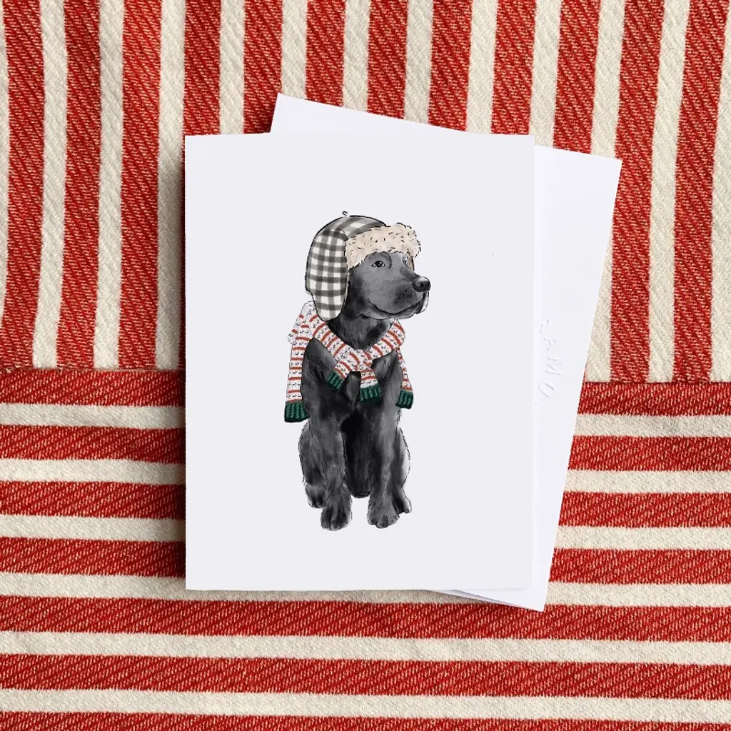 Winter/holiday Greeting Card Pack Sets (3 Ct) Candy Cane Black Lab By Ramus & Co
