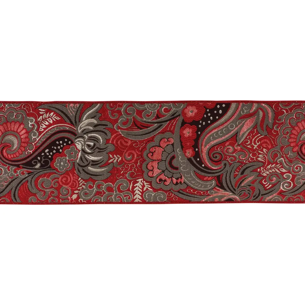 Embellish your home decor items, gift wrap, craft projects, and more with this beautiful Wired Holiday Ribbon. Measuring 6"x5 yards in length, the roll of ribbon features a paisley design. The classic red and gold tones paired with quality polyester and iron wire composition is the perfect combintion to create a stunning holiday display. Use this ribbon to make hand-tied bows to adorn onto your Christmas presents or holiday wreaths, or embellish your Christmas tree with a trailing ribbon garland.
