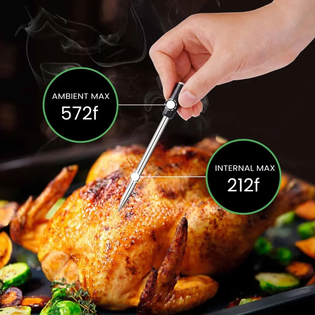 Wireless Bluetooth Wifi Meat Thermometer With Dual Sensors, App Control & Bamboo Charging Block, Tracks Up To 572°f For Grilling, Roasting & Smoking