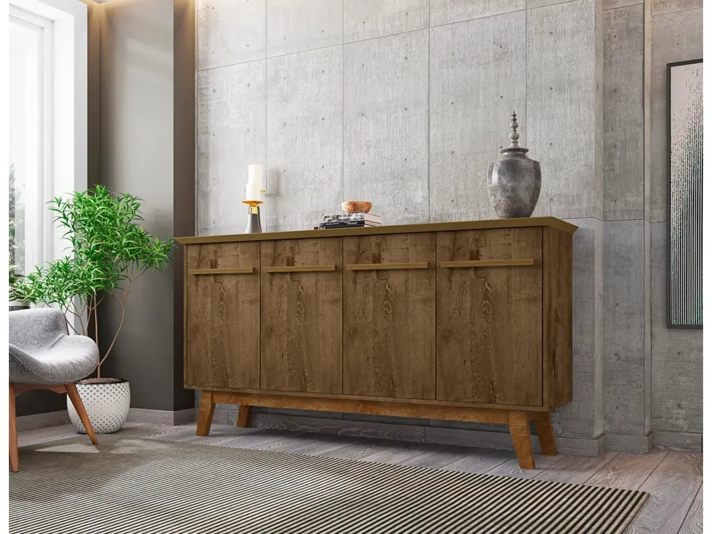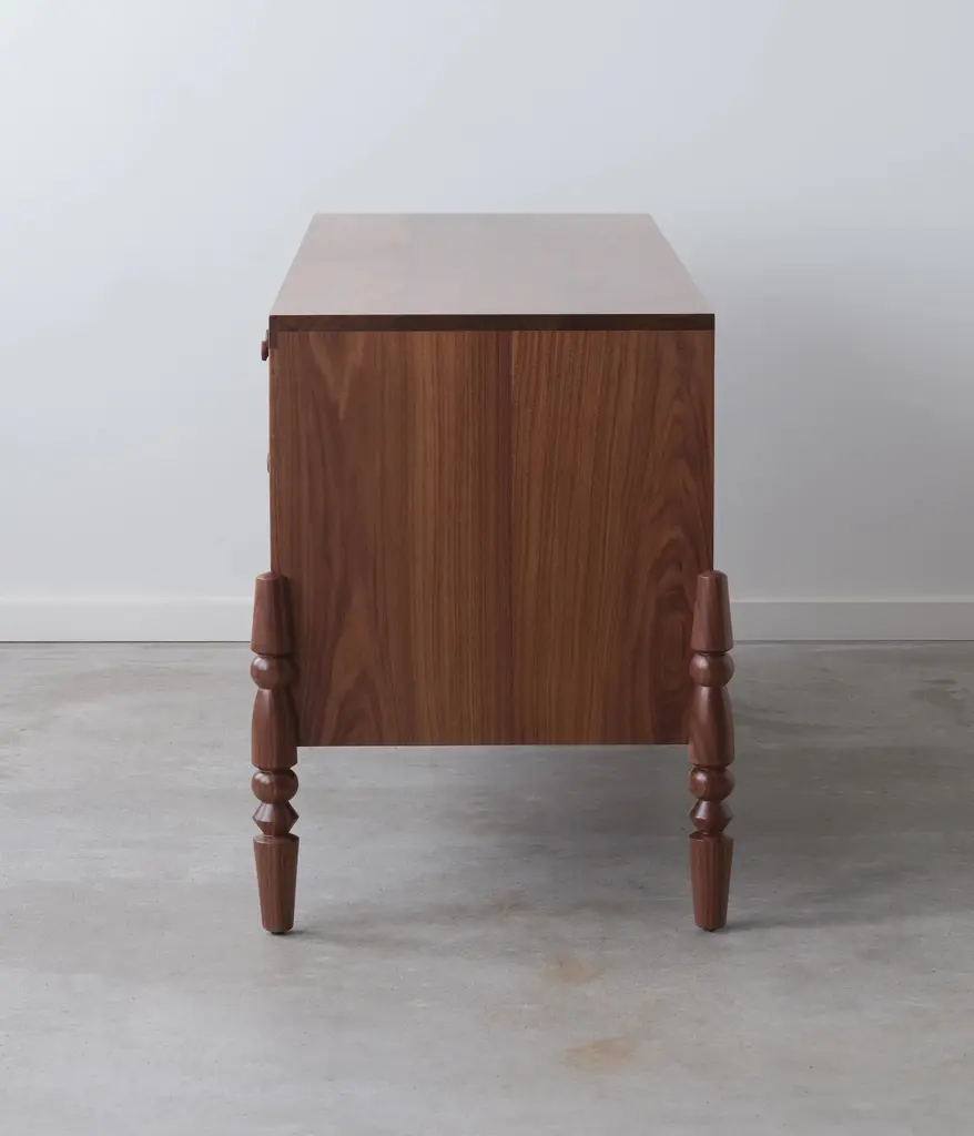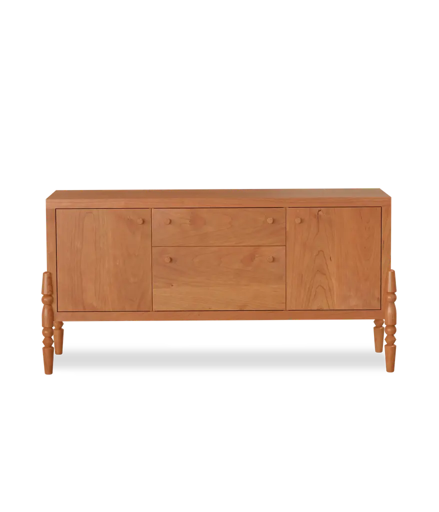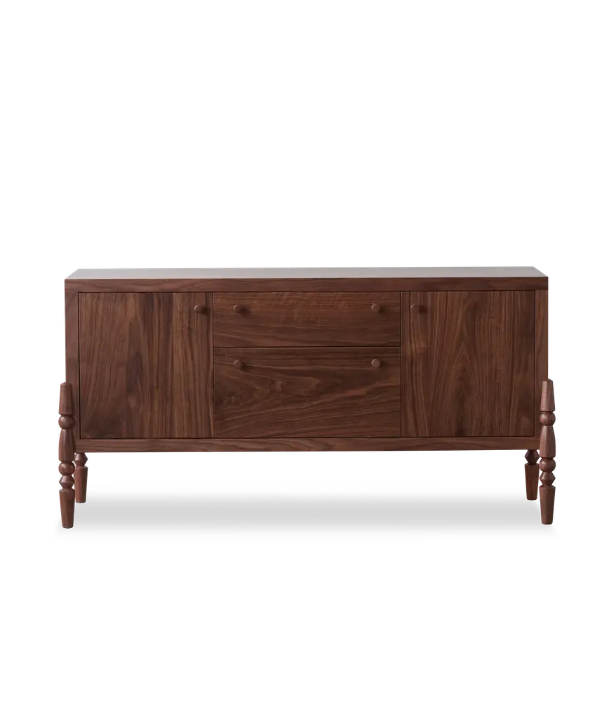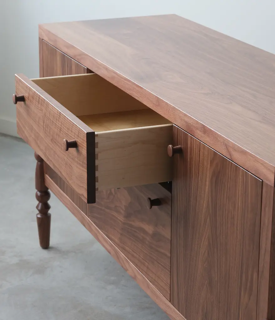 The Witmer credenza features classical details with a modern twist. Two drawers with soft close slides, two adjustable shelves, and cord cutouts, for your organizational needs. Doors have soft close hinges.