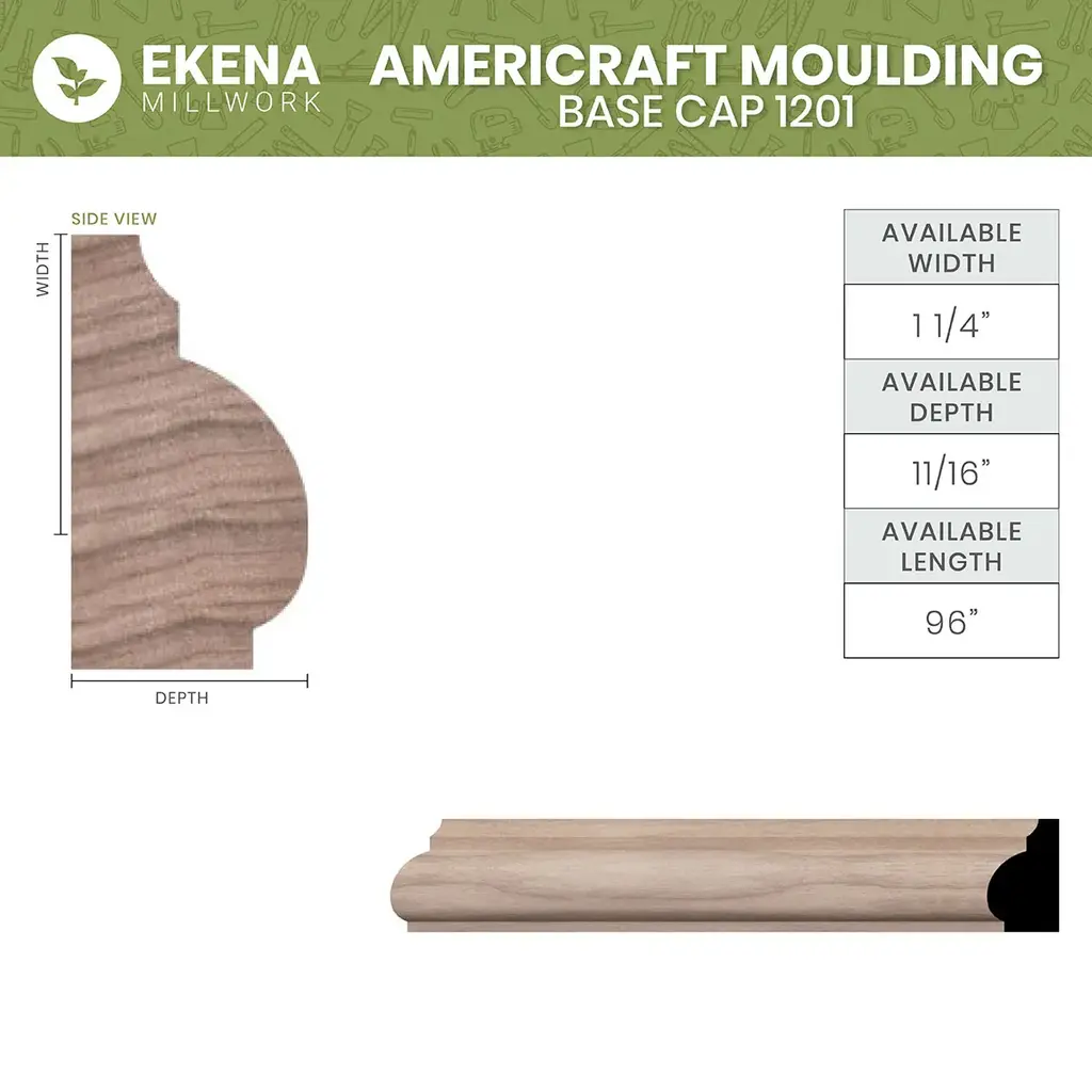 Wm1201 11/16-In D X 1-1/4-In W X 96-In L Americraft Solid Hardwood Stain Grade Base Cap Moulding - Walnut