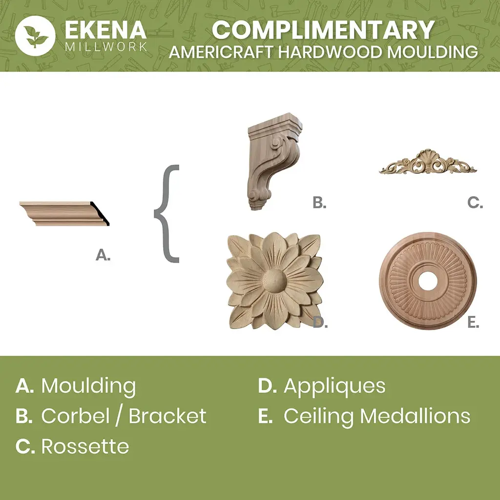 Natural variations and woodgrain in our moulding evoke luxury and sophistication. Ample design profiles are available in a variety of gorgeous wood species. Encompass your personal touch while incorporating a functional upgrade by choosing a beautiful profile from our collection of carved wood designs. Elevate your design style with our natural-look wood mouldings and turn a room into a work of art.Easily cut and installed using standard woodworking toolsSolid wood construction for durability and longevitySuitable for clear-coating, stain or paintSimple and elegant lines offer a clean lookReal wood offers exquisite warmth and detailSmooth, consistent surface with beautiful grain patterns
