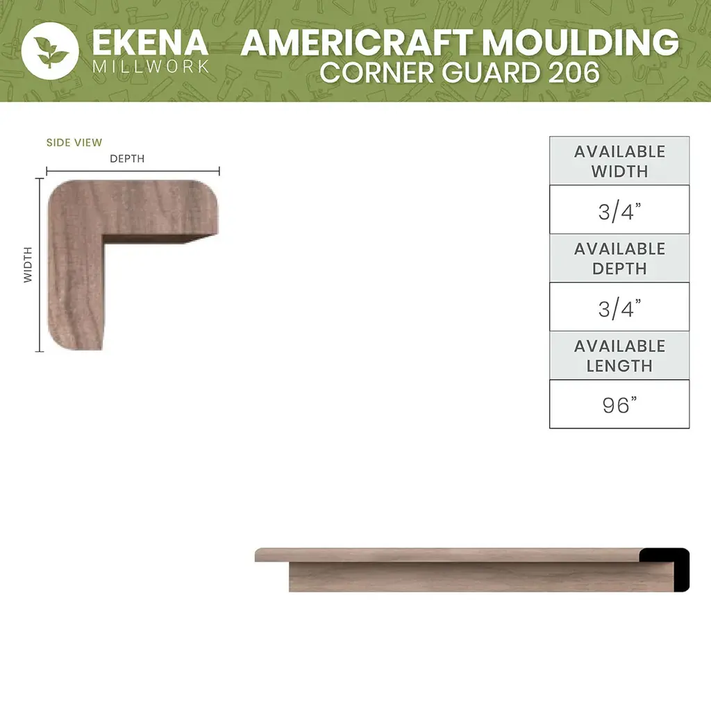 Wm206: 3/4-In D X 3/4-In W X 96-In L Americraft Solid Hardwood Stain Grade Corner Guard Moulding - Red Oak