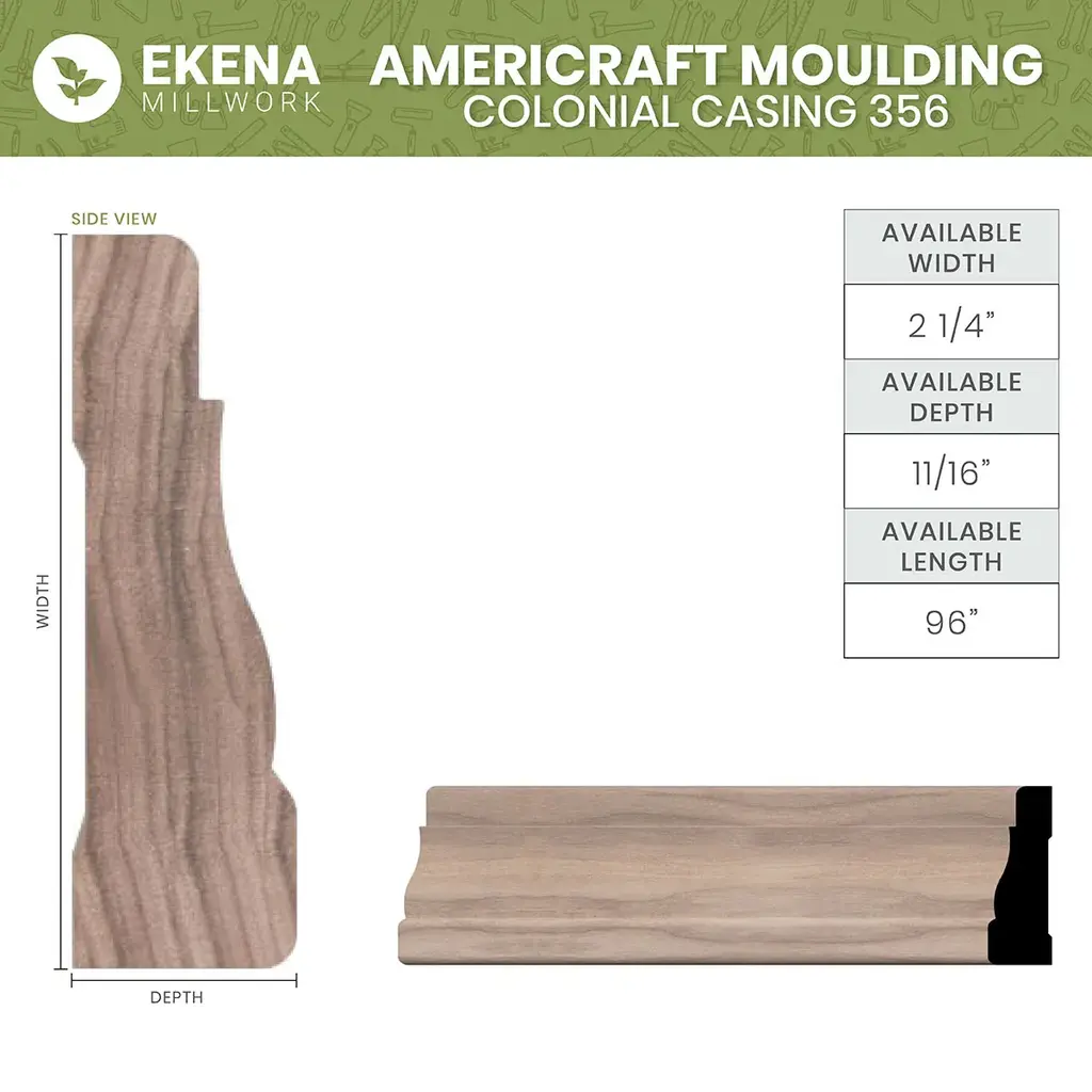 Wm356: 11/16-In D X 2-1/4-In W X 96-In L Americraft Solid Hardwood Stain Grade Colonial Casing Moulding - Red Oak