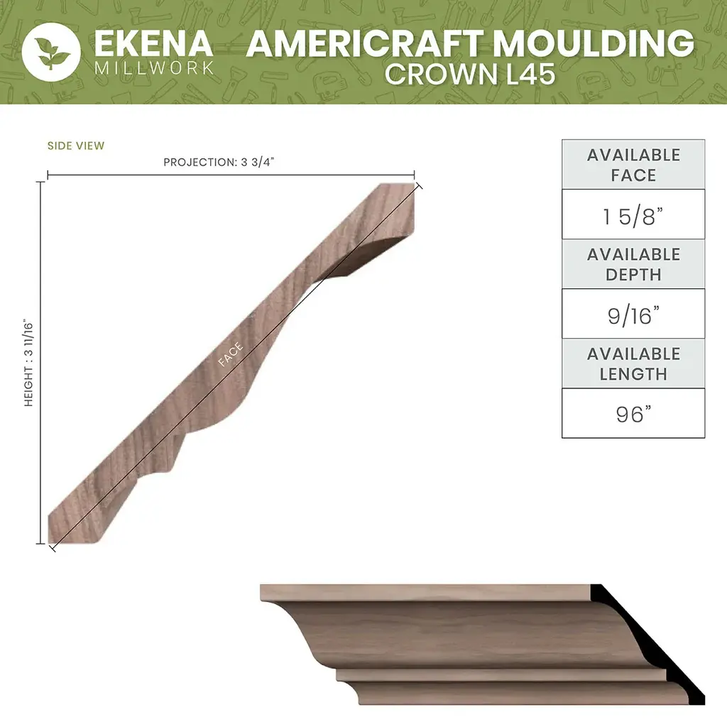 Natural variations and woodgrain in our moulding evoke luxury and sophistication. Ample design profiles are available in a variety of gorgeous wood species. Encompass your personal touch while incorporating a functional upgrade by choosing a beautiful profile from our collection of carved wood designs. Elevate your design style with our natural-look wood mouldings and turn a room into a work of art.Easily cut and installed using standard woodworking toolsSolid wood construction for durability and longevitySuitable for clear-coating, stain or paintSimple and elegant lines offer a clean lookReal wood offers exquisite warmth and detailSmooth, consistent surface with beautiful grain patterns