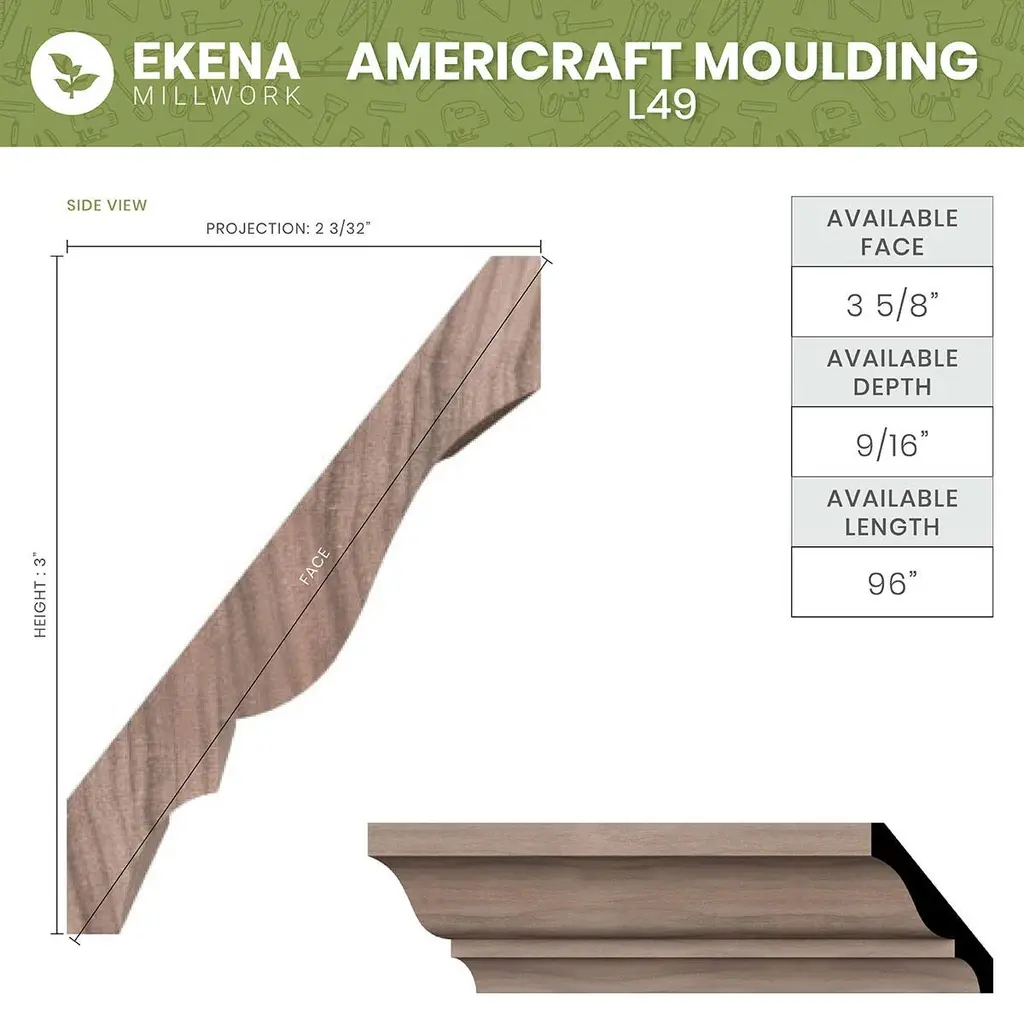 Wm49: 3-In H X 2-1/10-In P X 3-7/10-In F X 96-In L Americraft Solid Hardwood Stain Grade Crown Moulding - Cherry