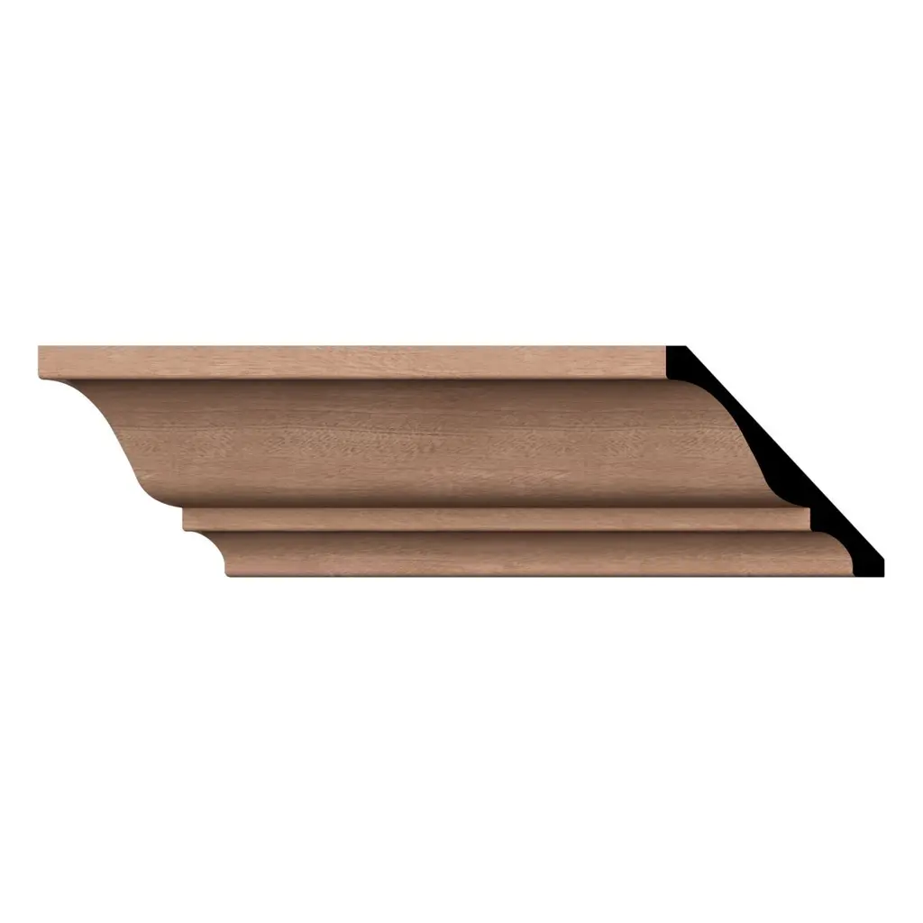 Wm49: 3-In H X 2-1/10-In P X 3-7/10-In F X 96-In L Americraft Solid Hardwood Stain Grade Crown Moulding - Sapele Mahogany